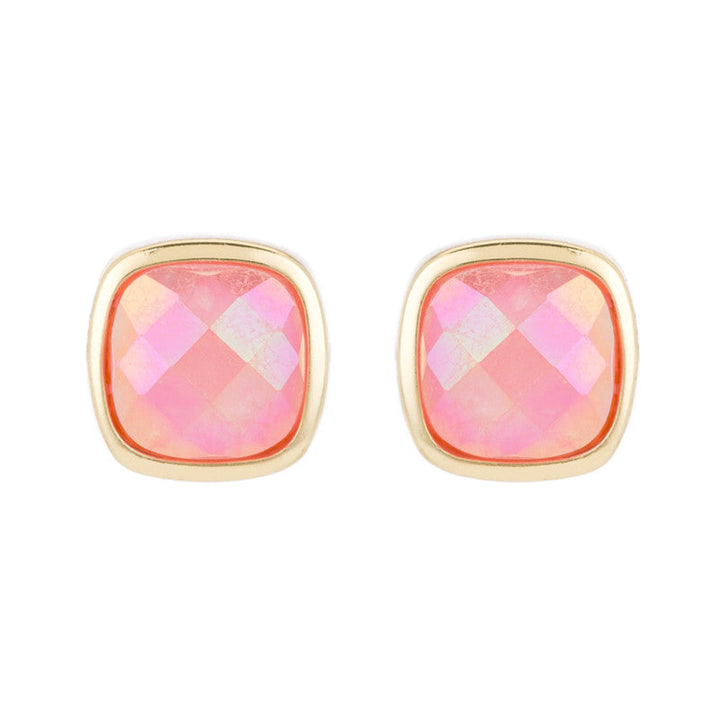 These Avra Small Square Studs by Marcia Moran are tiny square stone studs available in various druzy hues and two shades of pearlized chalcedony. Their simple yet elegant design makes them perfect for everyday wear.