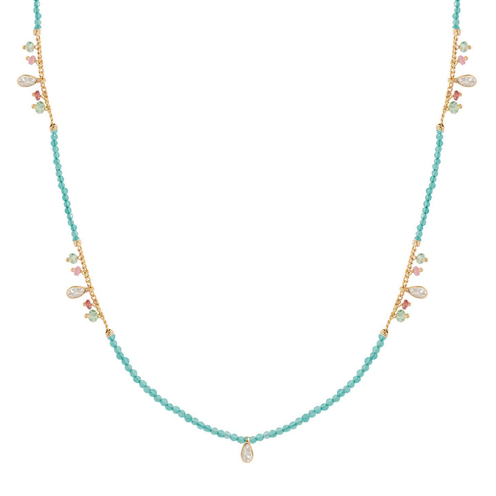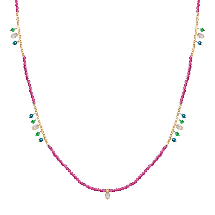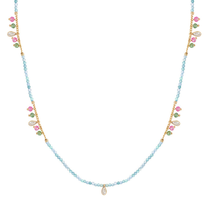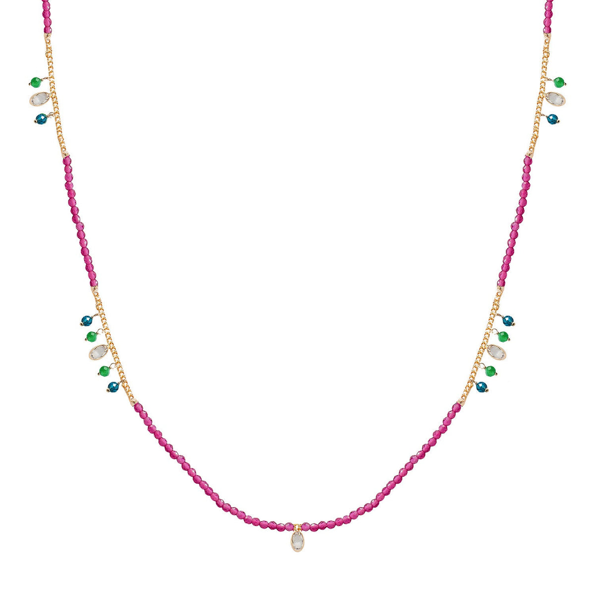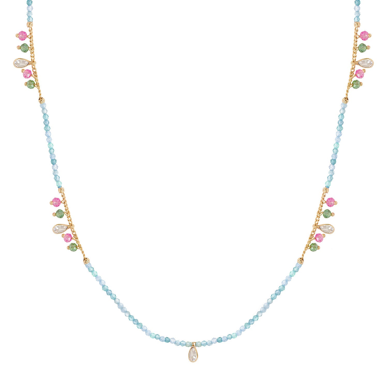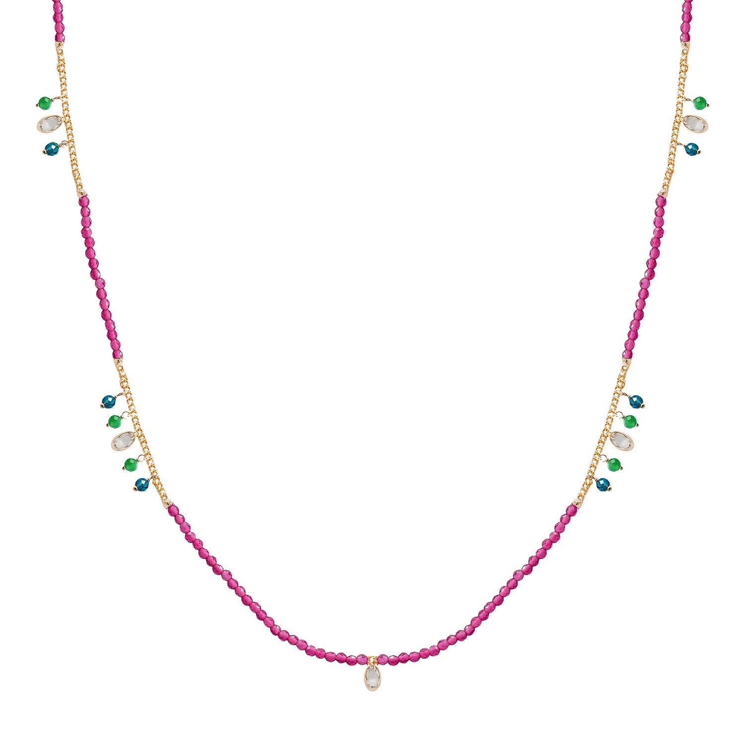 18k gold plated with multicolor beads and cubic zirconia. Necklace measures 19 inches with a 1-inch extender. Handmade in Brazil.