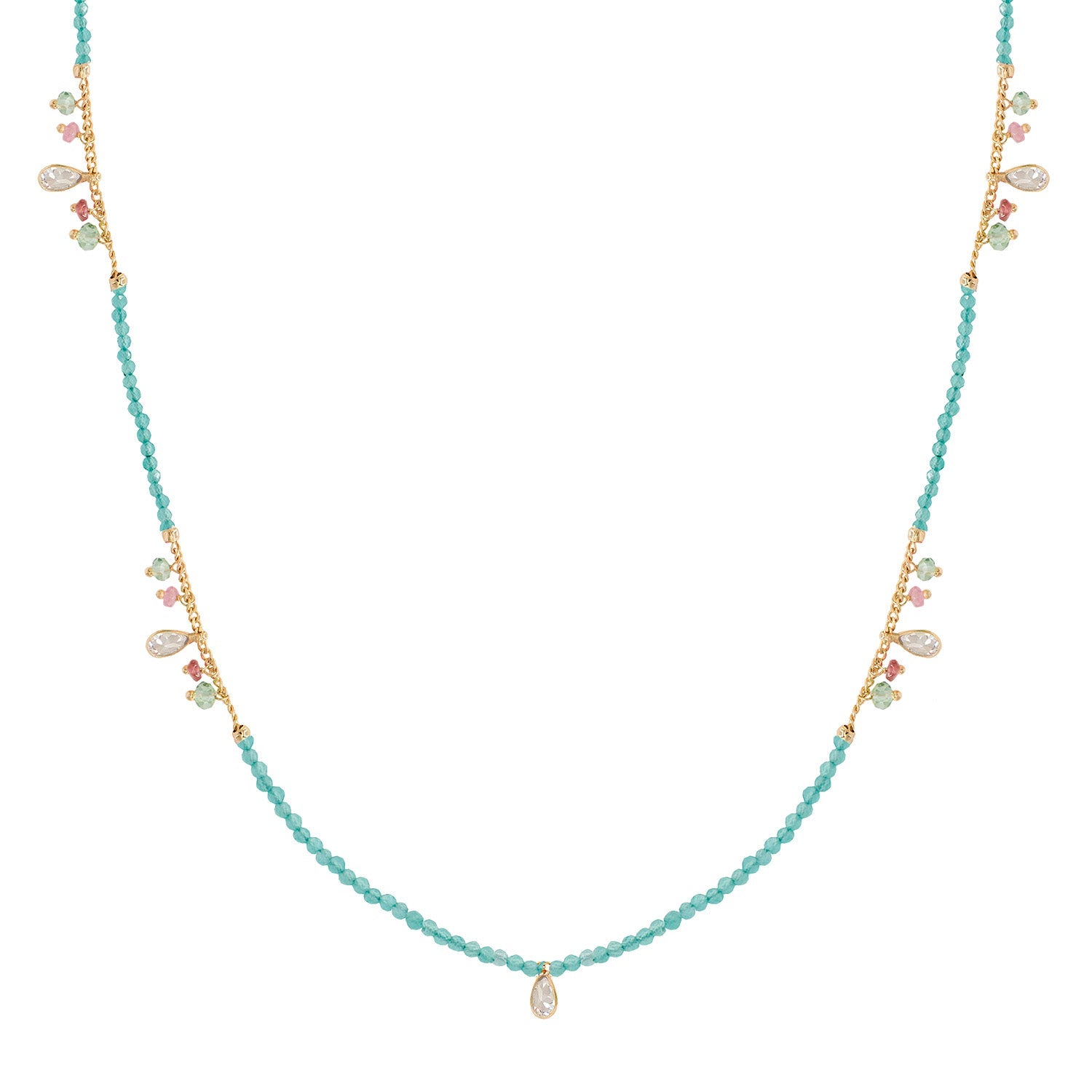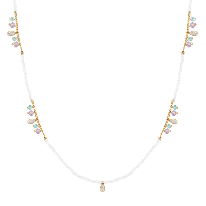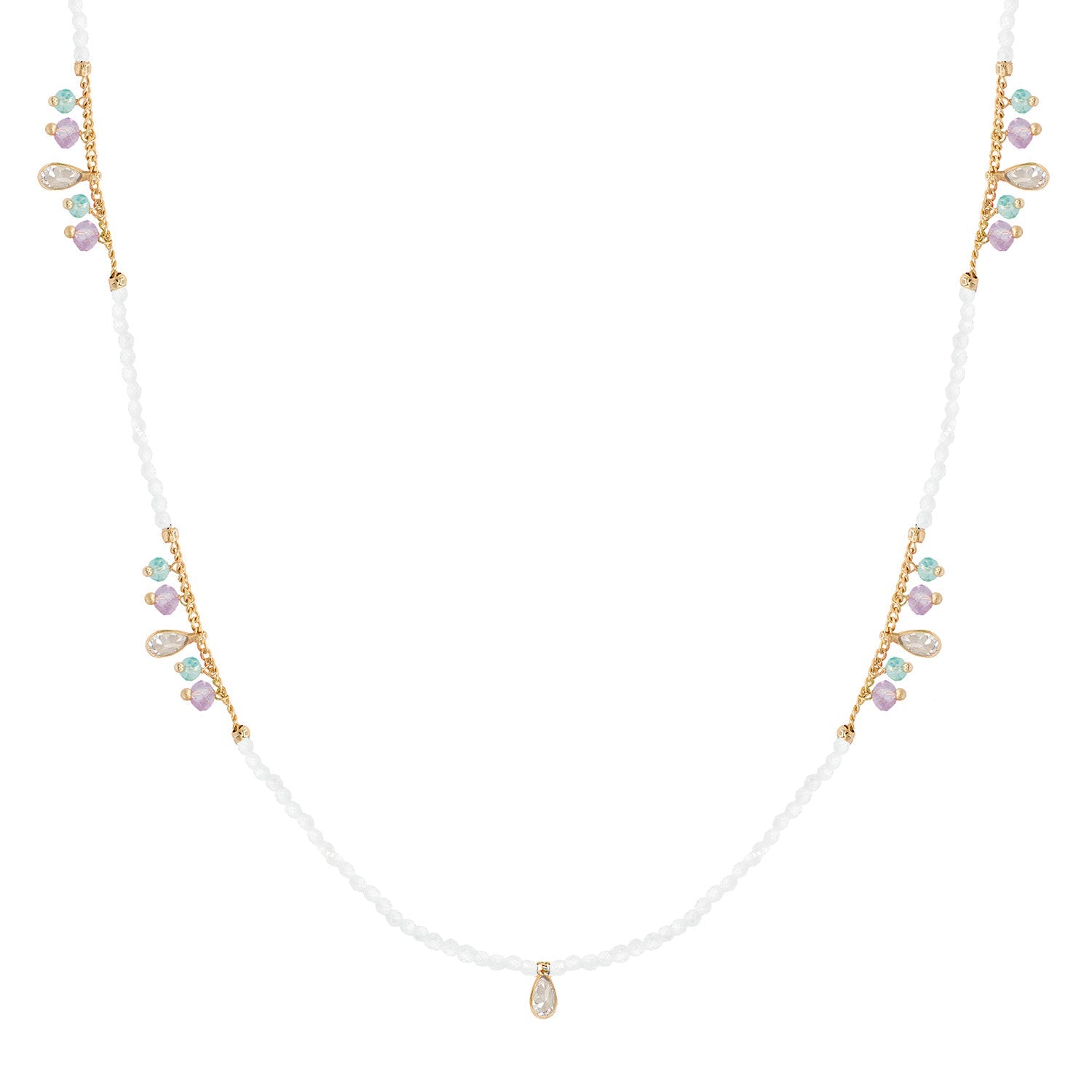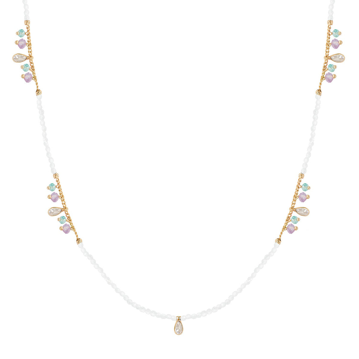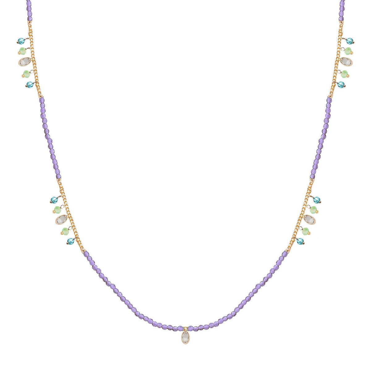 18k gold plated with multicolor beads and cubic zirconia. Necklace measures 19 inches with a 1-inch extender. Handmade in Brazil.