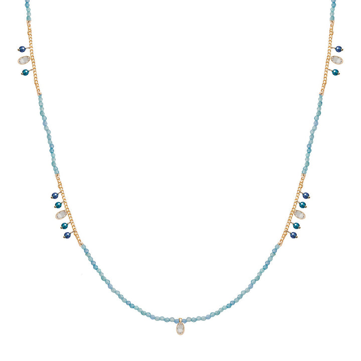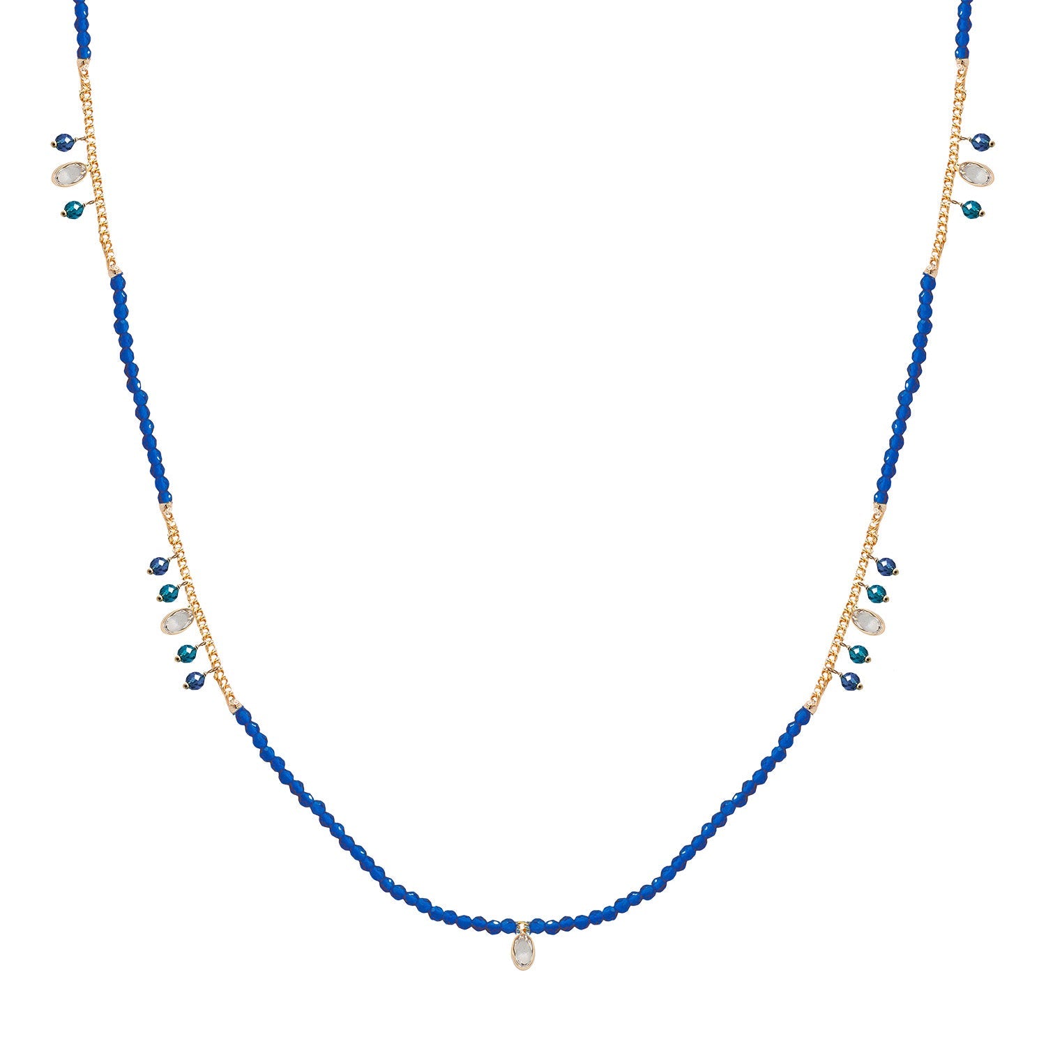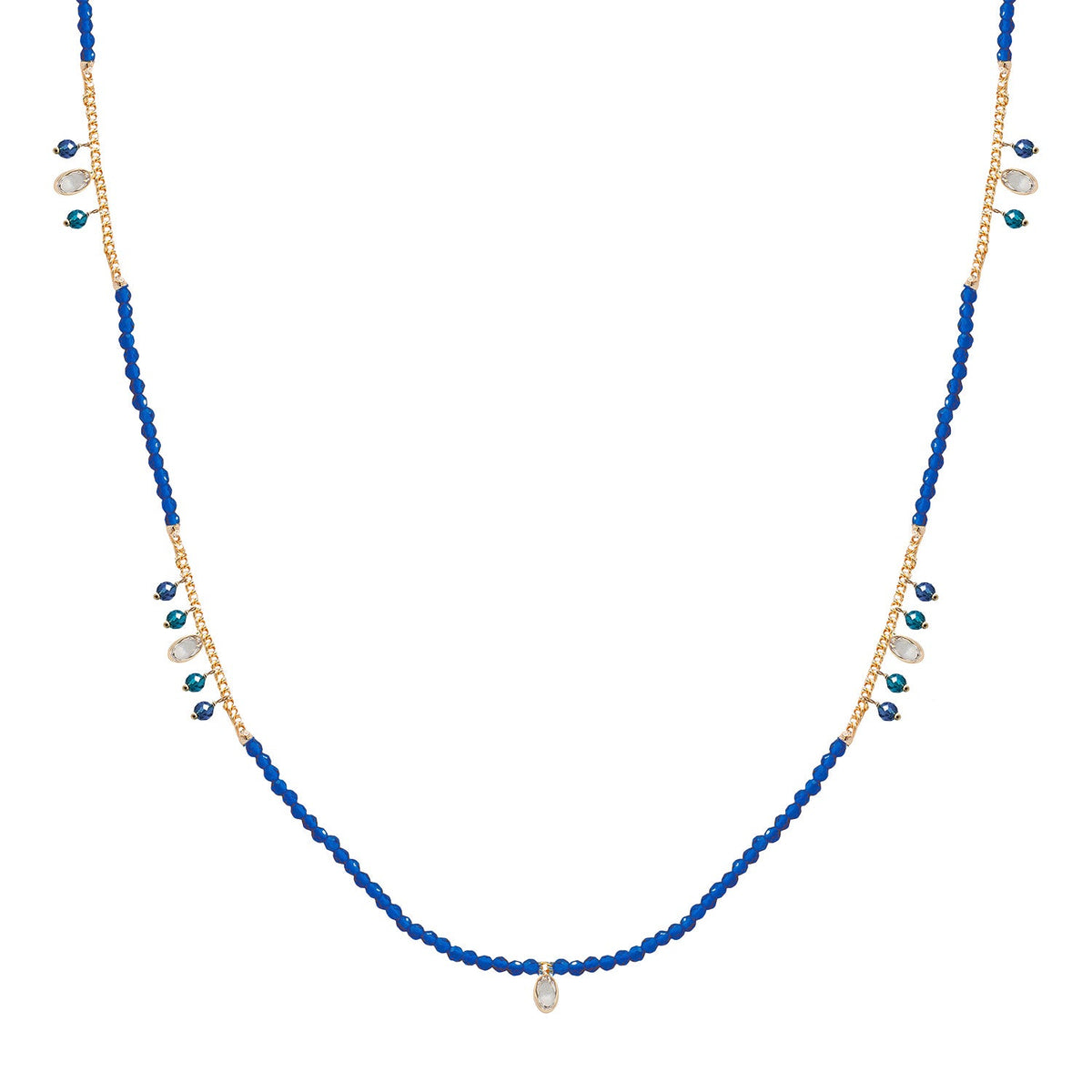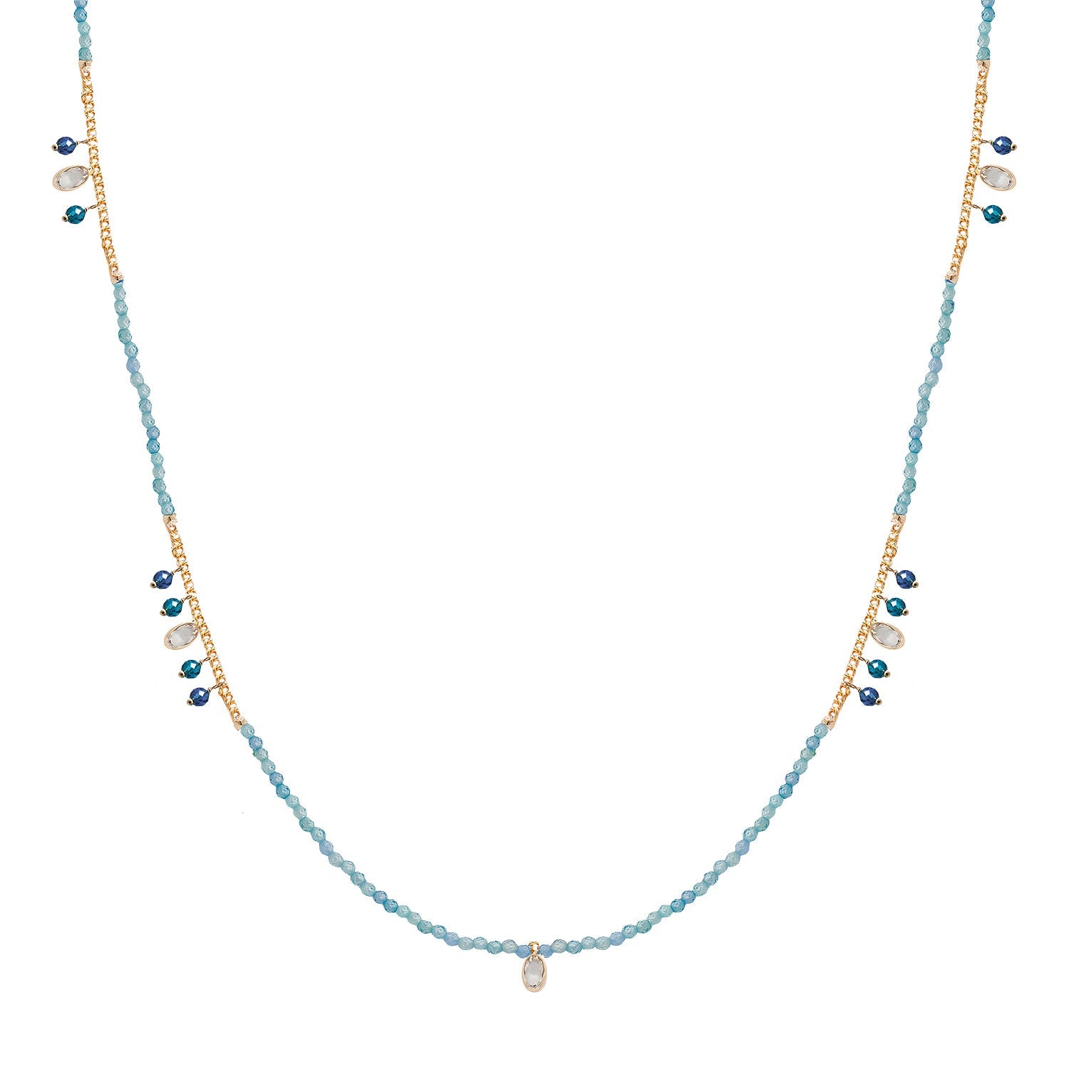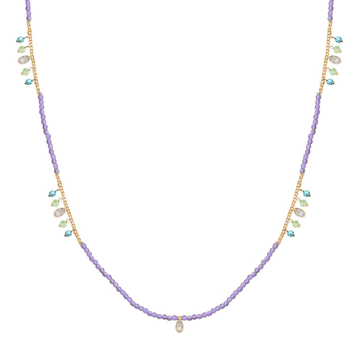 18k gold plated with multicolor beads and cubic zirconia. Necklace measures 19 inches with a 1-inch extender. Handmade in Brazil.