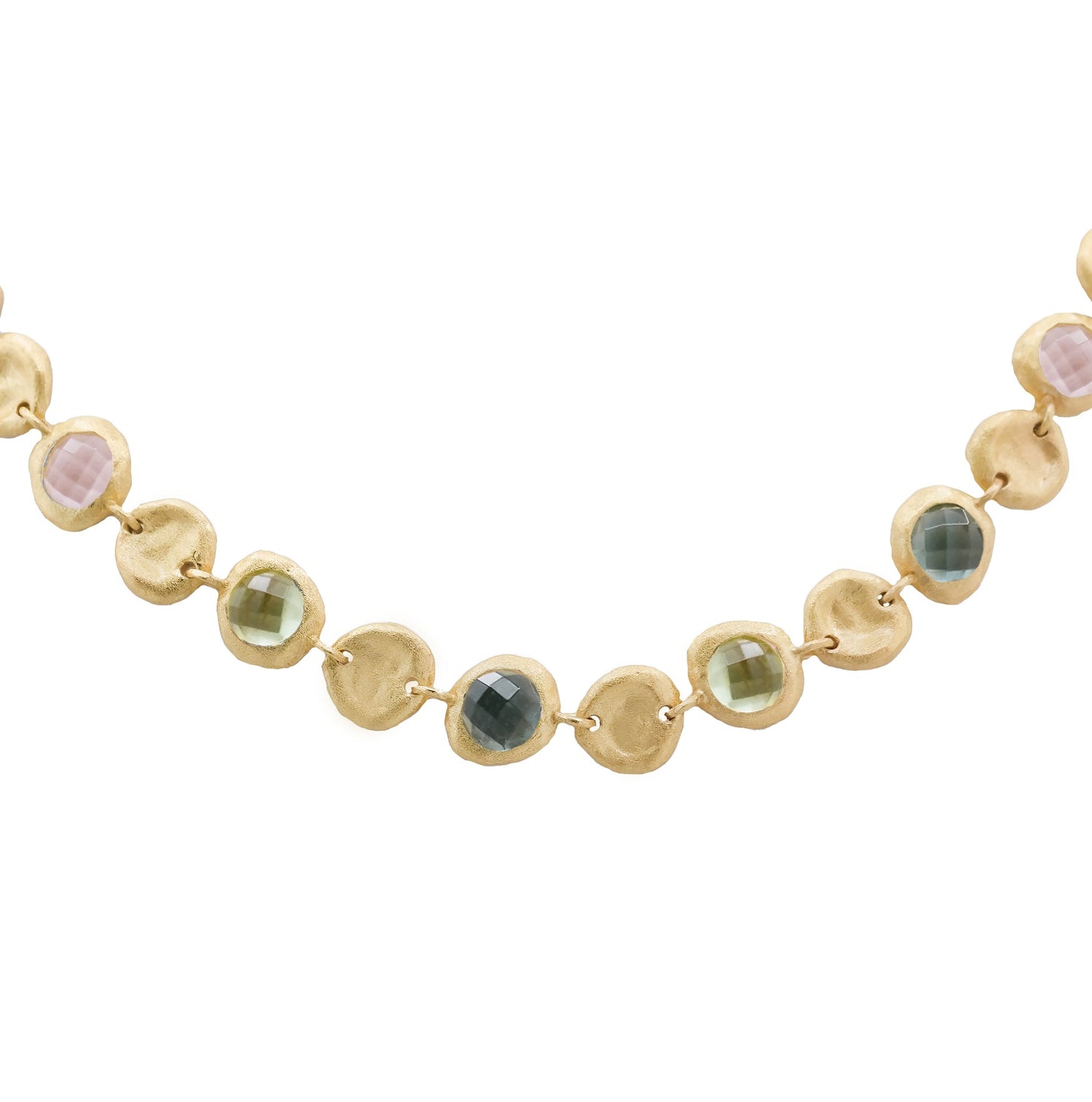 18k gold plated over brass with natural semi-precious stones. Necklace measures 18 inches. Handmade in Brazil.