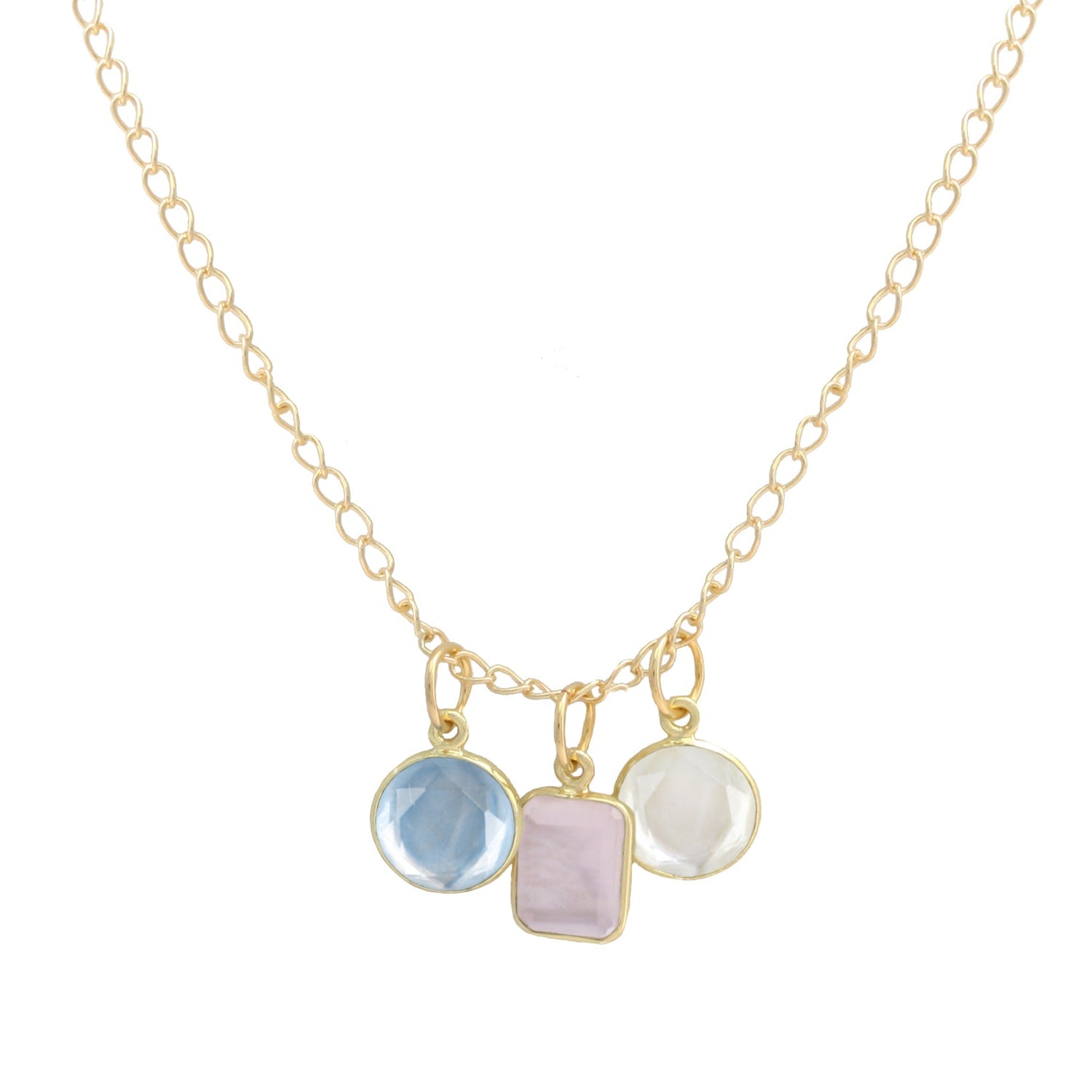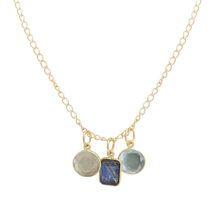 The Koralia Round Charms Short Necklace by Marcia Moran features three drop stones, offering a simple yet elegant design. A perfect piece for layering with other necklaces.