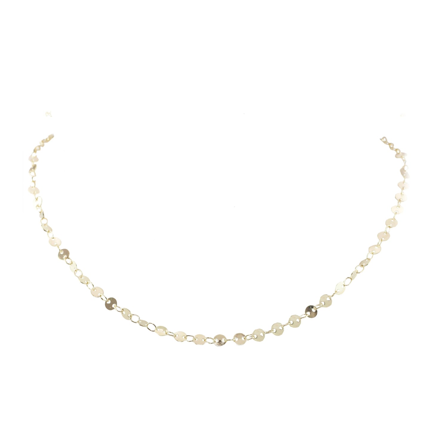 18k gold plated miniature disk chain. Measures 18'. Handmade in Brazil.