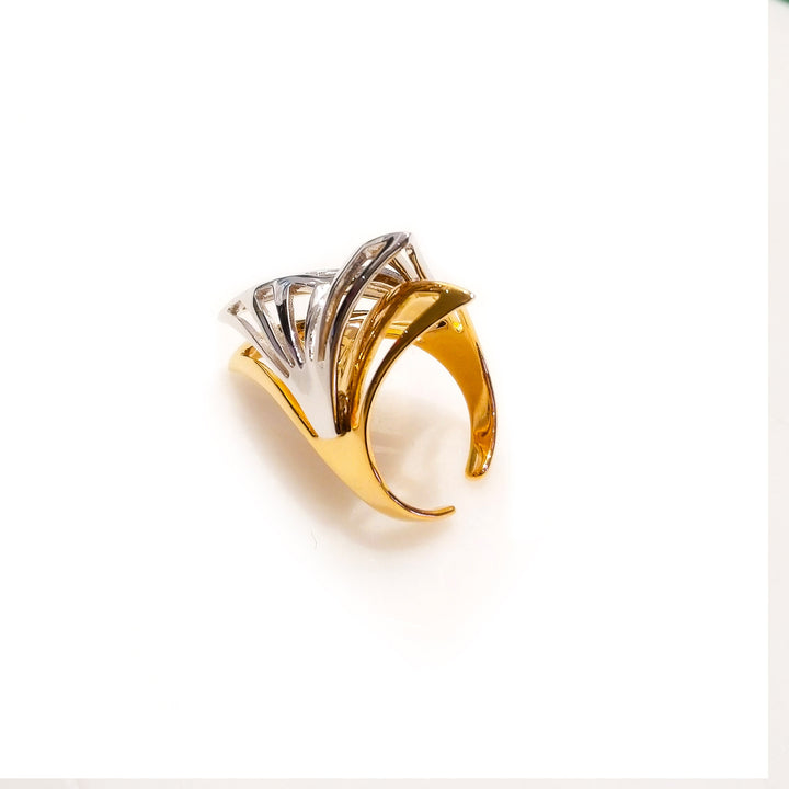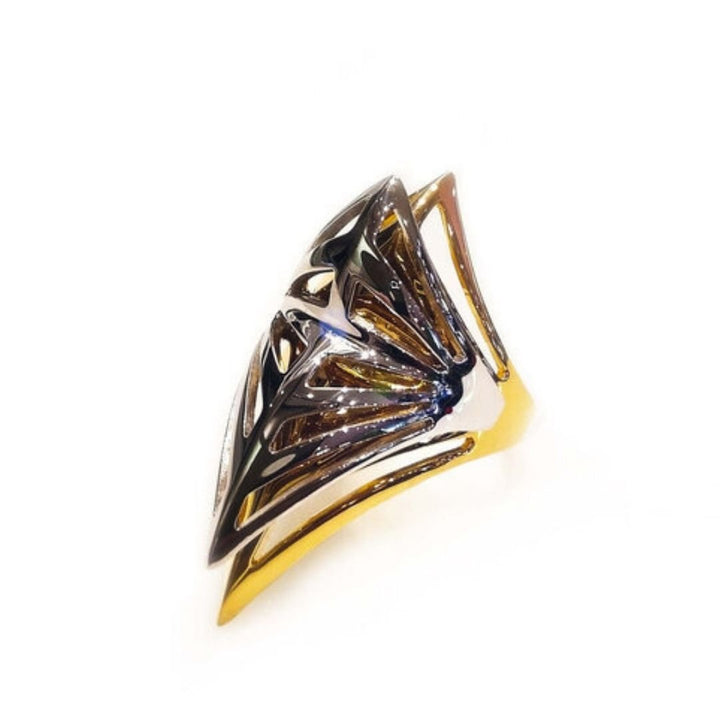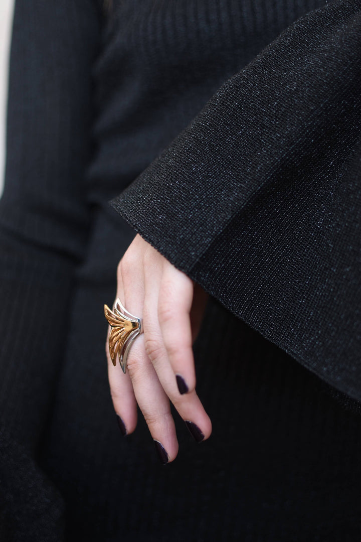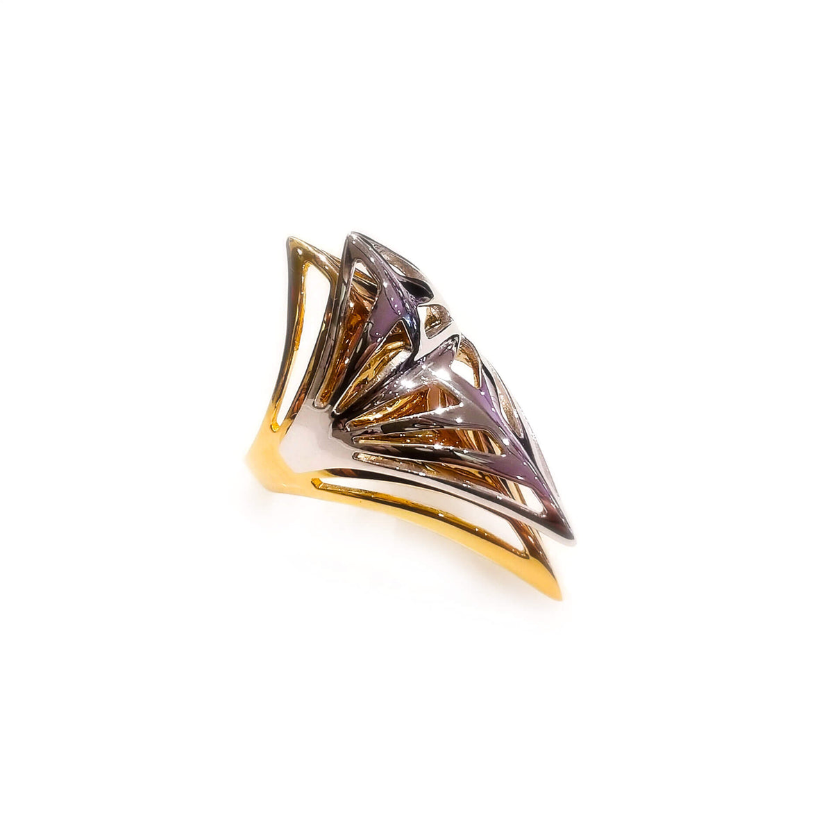 From the Duality and Balance series, this is the powerful Armor Ring. Its name and design comes from medieval knights' armour helmets, used for protection in battles. The two pieces form a protective barrier that protect our warrior inside while showing the essence of our warrior soul.
