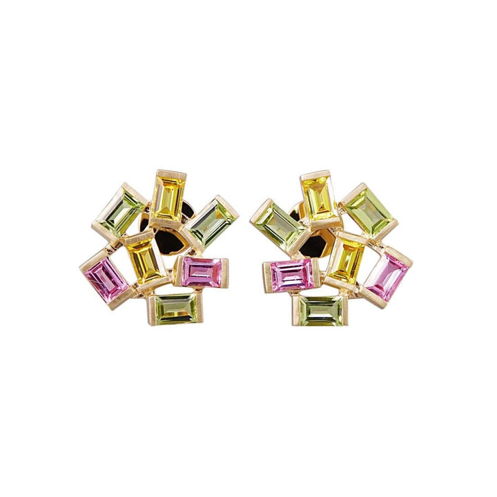 Large Jubilation Studs - Peridot, Pink and Yellow Sapphire