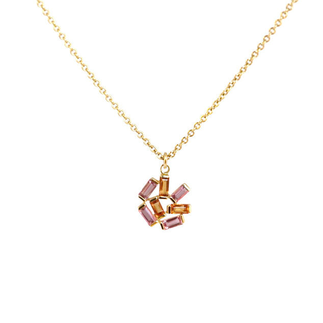 Emily created the pieces in her Jubilation collection to be breathtaking mini bursts of color. Exuberant color and joyful energy come together in the Jubilation pendant. Featuring pink and orange sapphires, this is stunning for every day or for a special occasion.