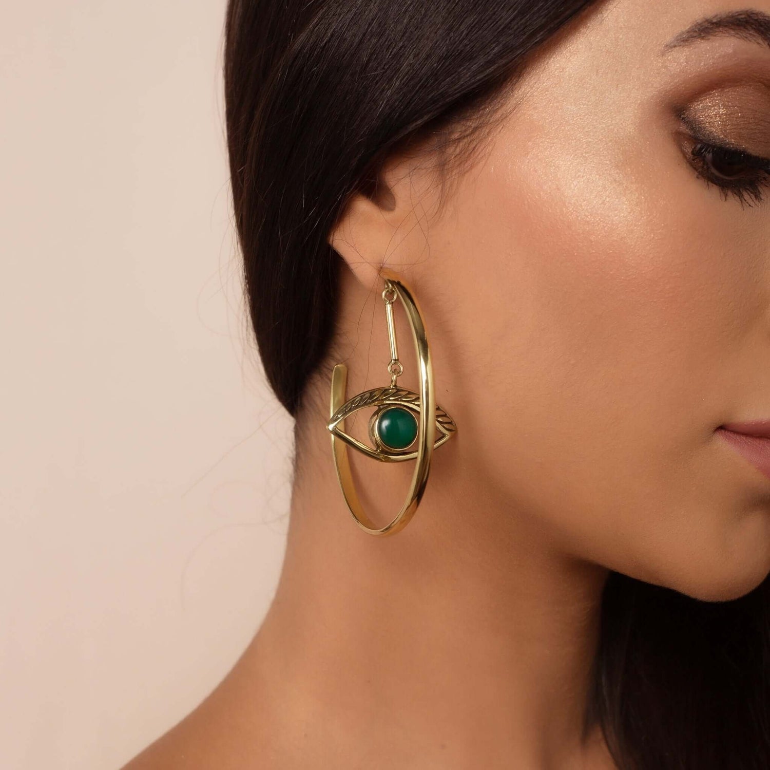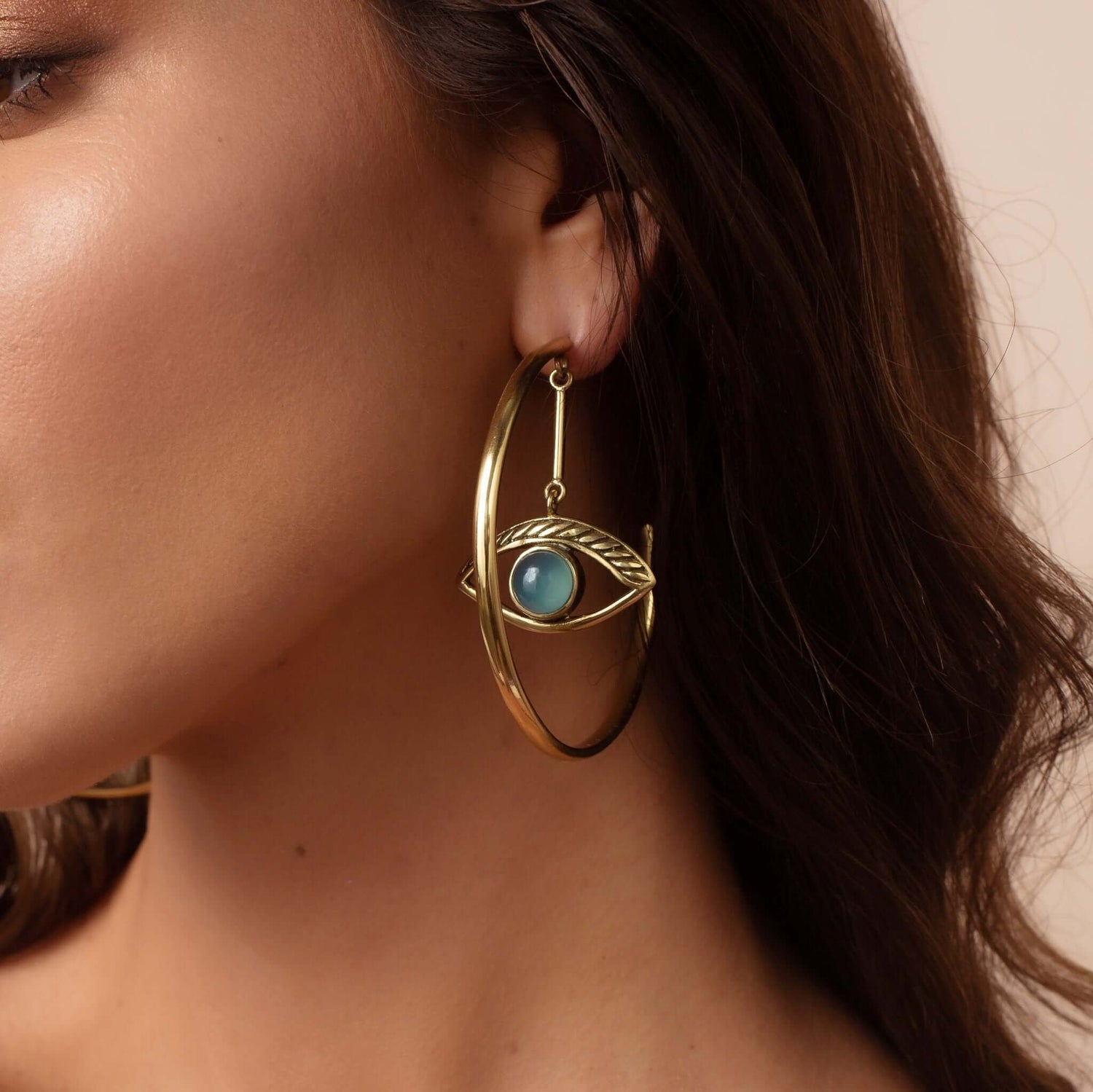 The All Eyes On Me collection is inspired by eyes and the idea of playing with shapes to recreate this eye look impression. The goal was to create something simple but at the same time something that will make a statement. The Eya earrings are your regular hoops with the Kasha twist of the beautiful feminine topaz touch that really pops and illuminates your face. They are definitely a statement piece you need to vamp up your daily outfit. Unconventional, elegant and simple is Kasha Bali's DNA.