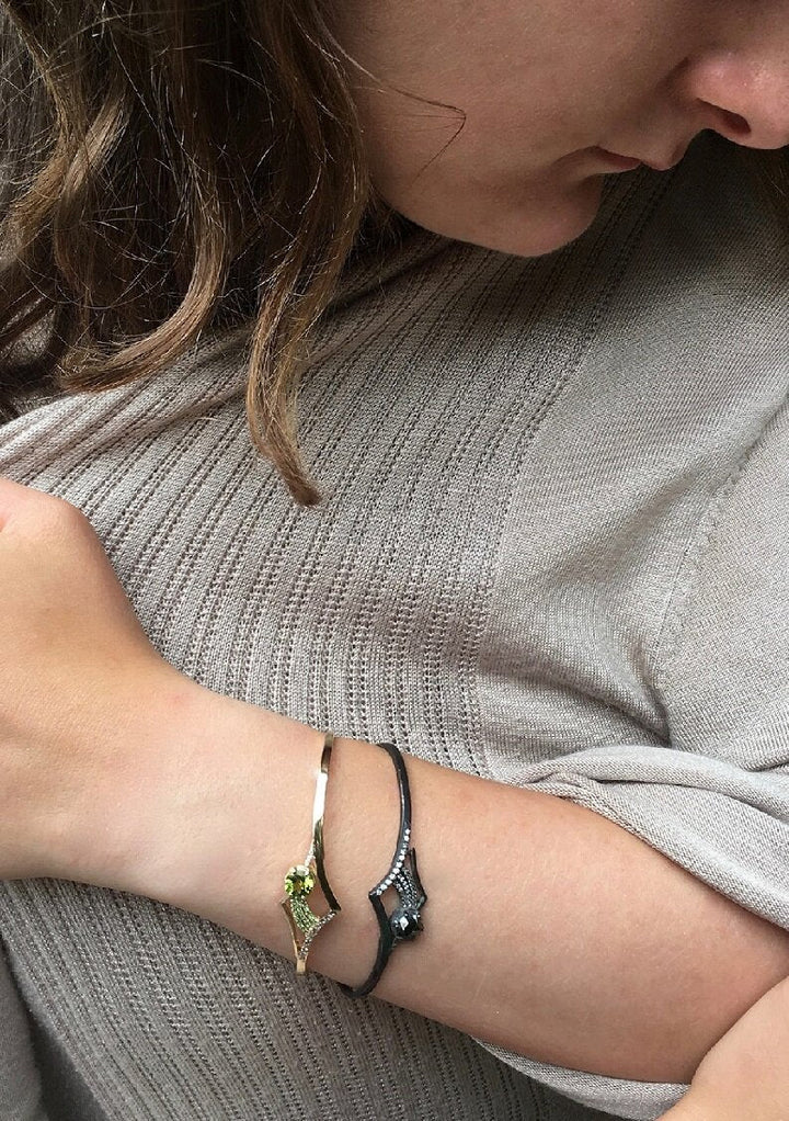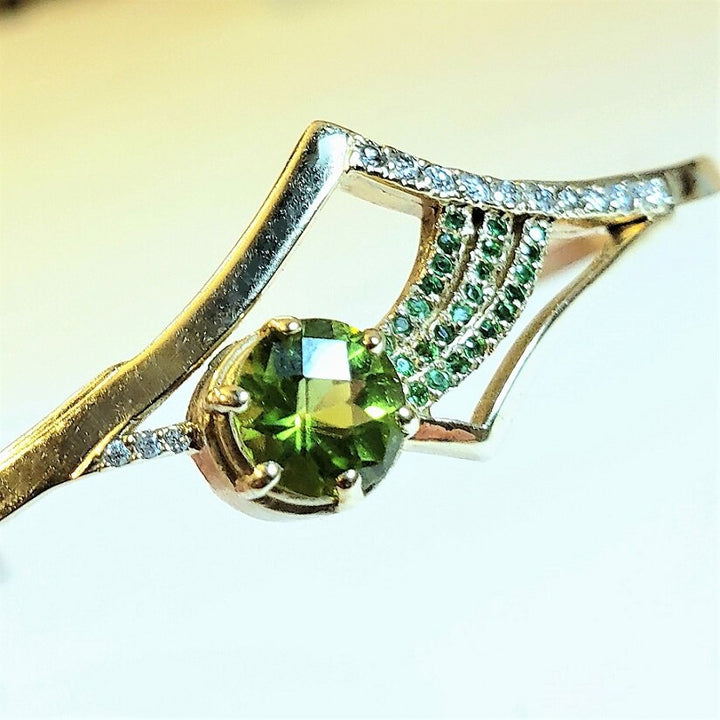 This Antares Cuff Bracelet by Martha Seely brings the magic of a shooting star to your wrist. Available in multiple sizes, it features a shimmering combination of peridot, tsavorite, and diamonds, making it the perfect piece for those who dream big and embrace their inner strength.