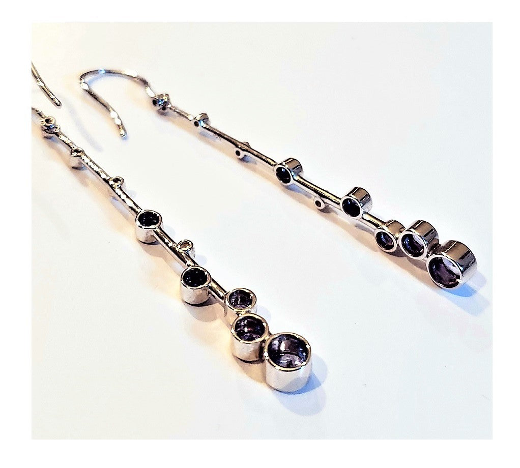 Constellation - Elongated Drop Earrings With Sapphires, Tanzanites & Diamonds