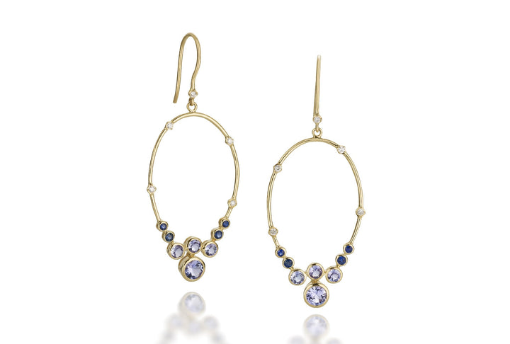 These Constellation Hoop Earrings with Gemstones by Martha Seely are designed for effortless daily wear. Lightweight and pretty, these hoops feature multi-color gemstones and diamonds, offering a playful yet elegant look. Available with French wire or lever-back options.