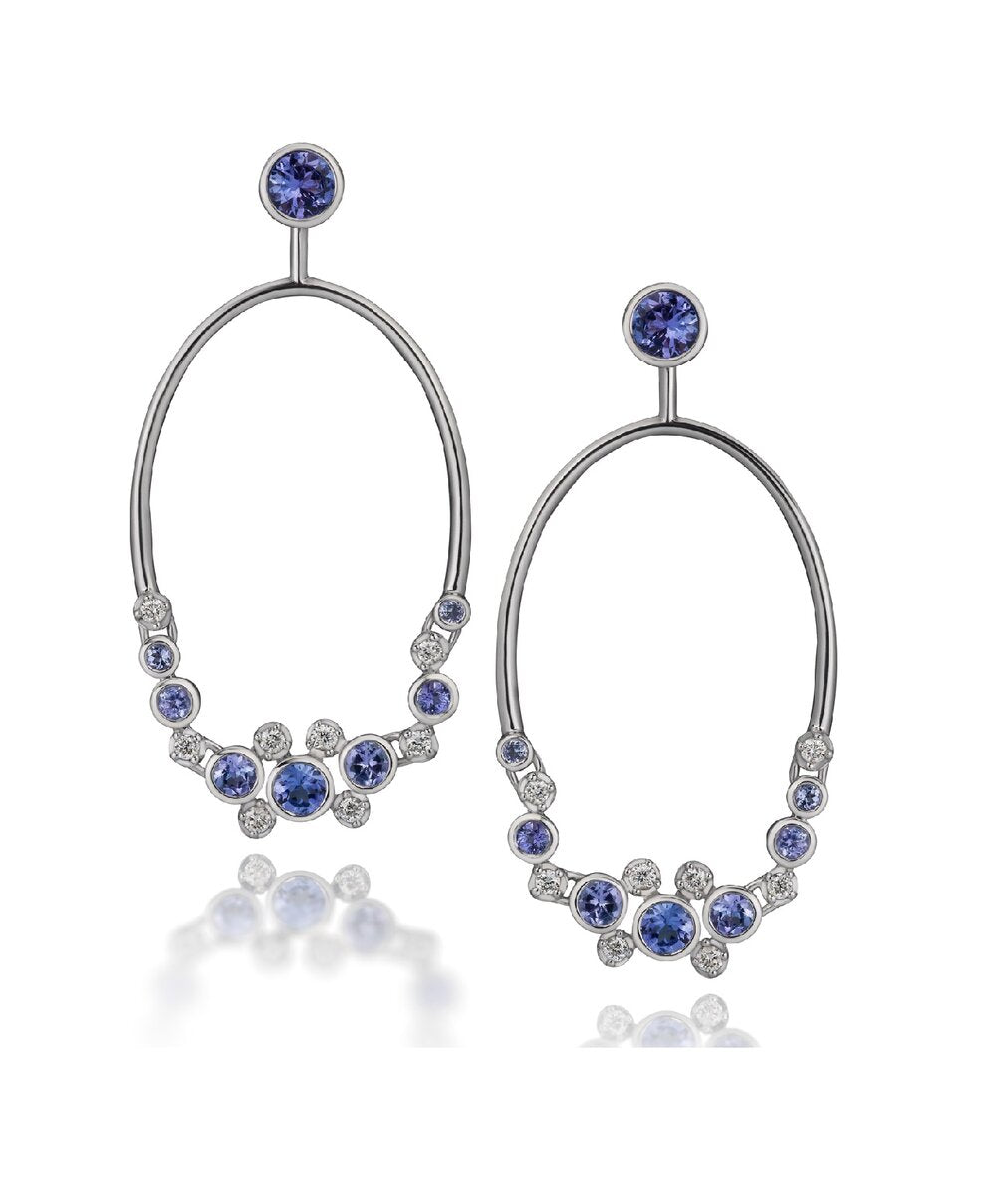 These Halo Cluster Mix and Match Earrings with Sapphires, Tanzanites & Diamonds by Martha Seely are versatile, designed with three interchangeable parts: a bezel-set stud, a dangle cluster, and an added hoop. Wear them together or separately, or mix them with your own diamond studs.
