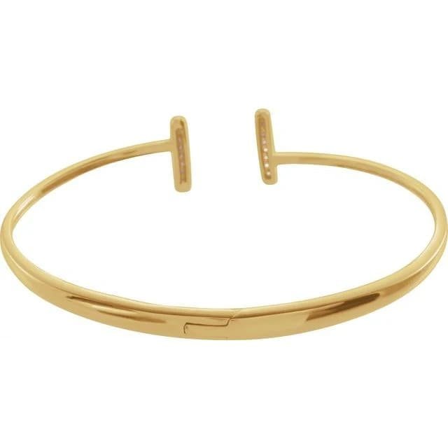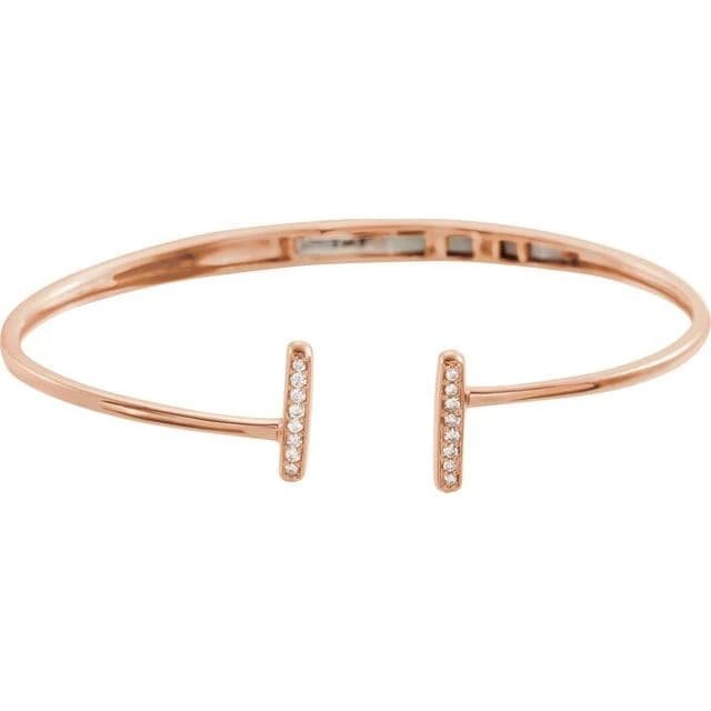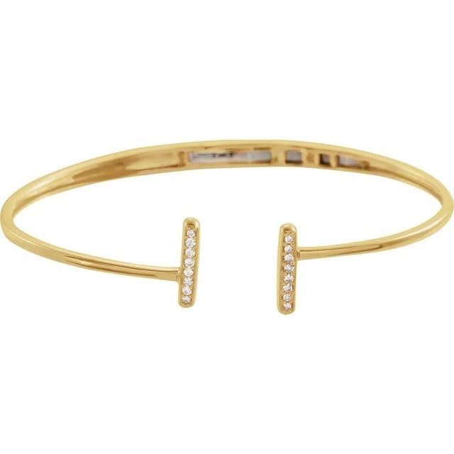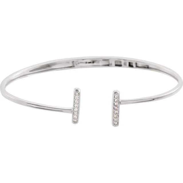 A versatile style, this open-bar style ensures a comfortable slipping on and off, and fourteen round-cut diamonds deliver just the right touch of sparkle.