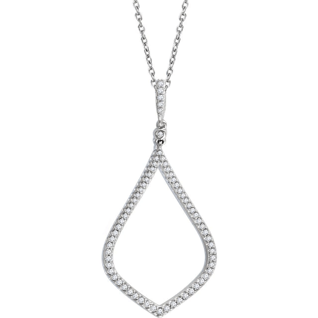 14k white gold with diamonds, 1/4 ctw.Dimensions: Approx. length: 18 inches. Pendant 37.5 x 17.7 mm.