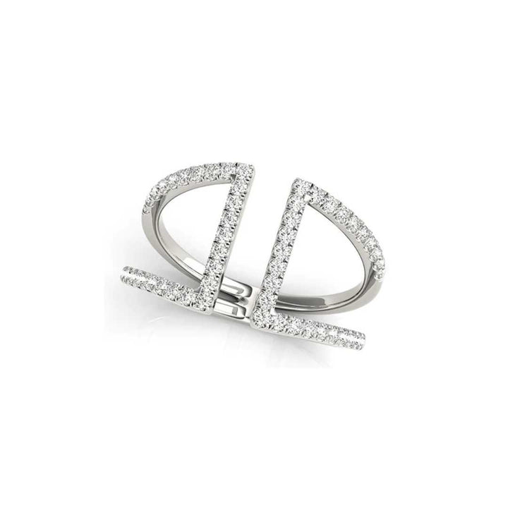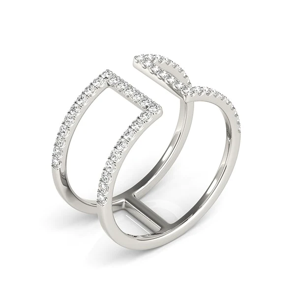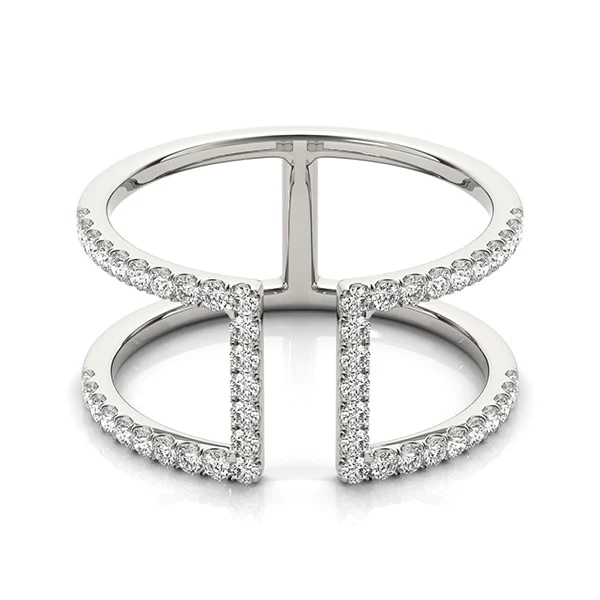 Wonderfully beguiling, this dual-band style ring showcases a parallel design and is pavé set with brilliant diamonds. Crafted in fine 14k white gold.