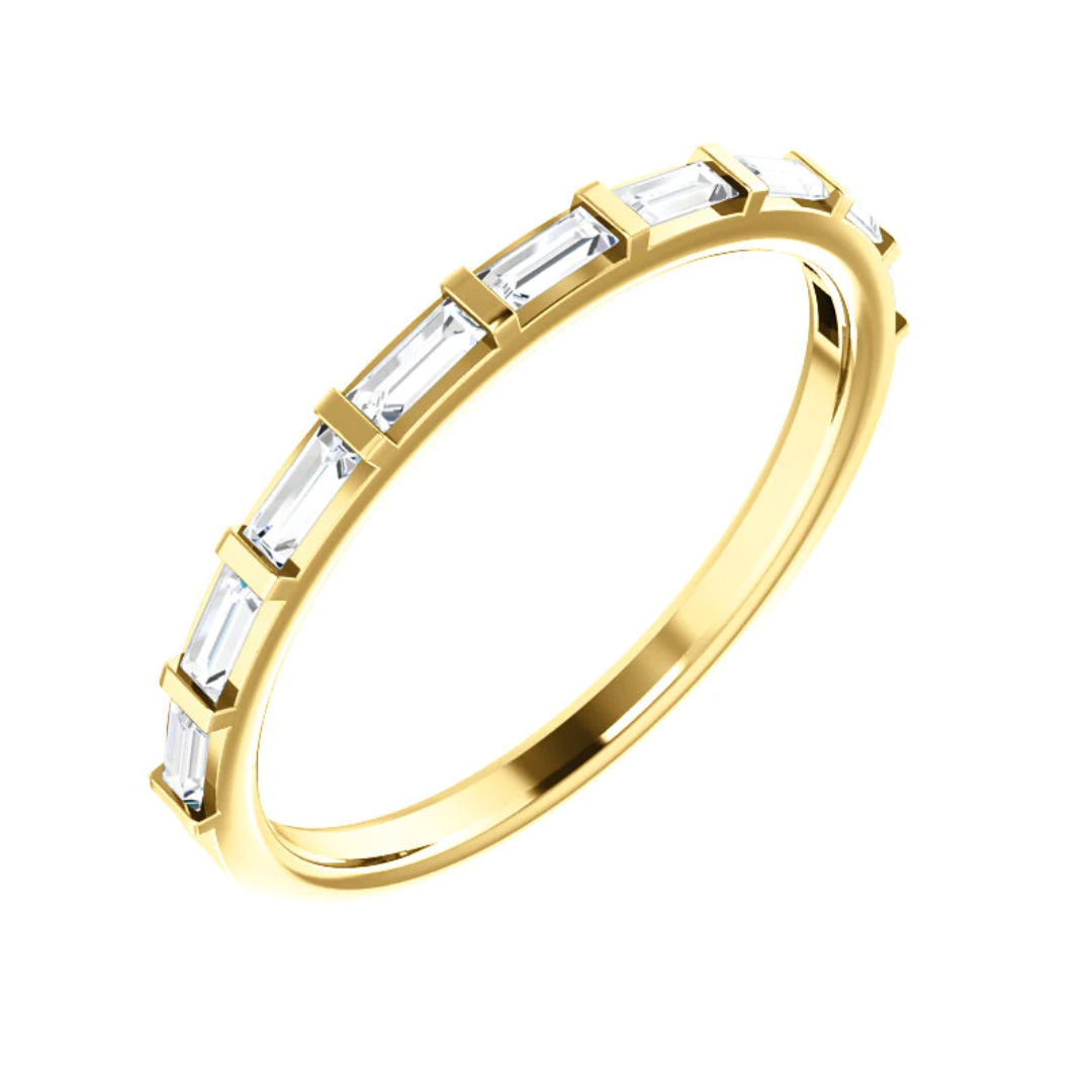 The diamond baguette ring has the maximum sparkle and brilliance. This beauty exudes personality and alone it is the perfect everyday ring. The perfect addition to your ring stack; a dainty trendsetting ring that goes well with elevates any ring stack.