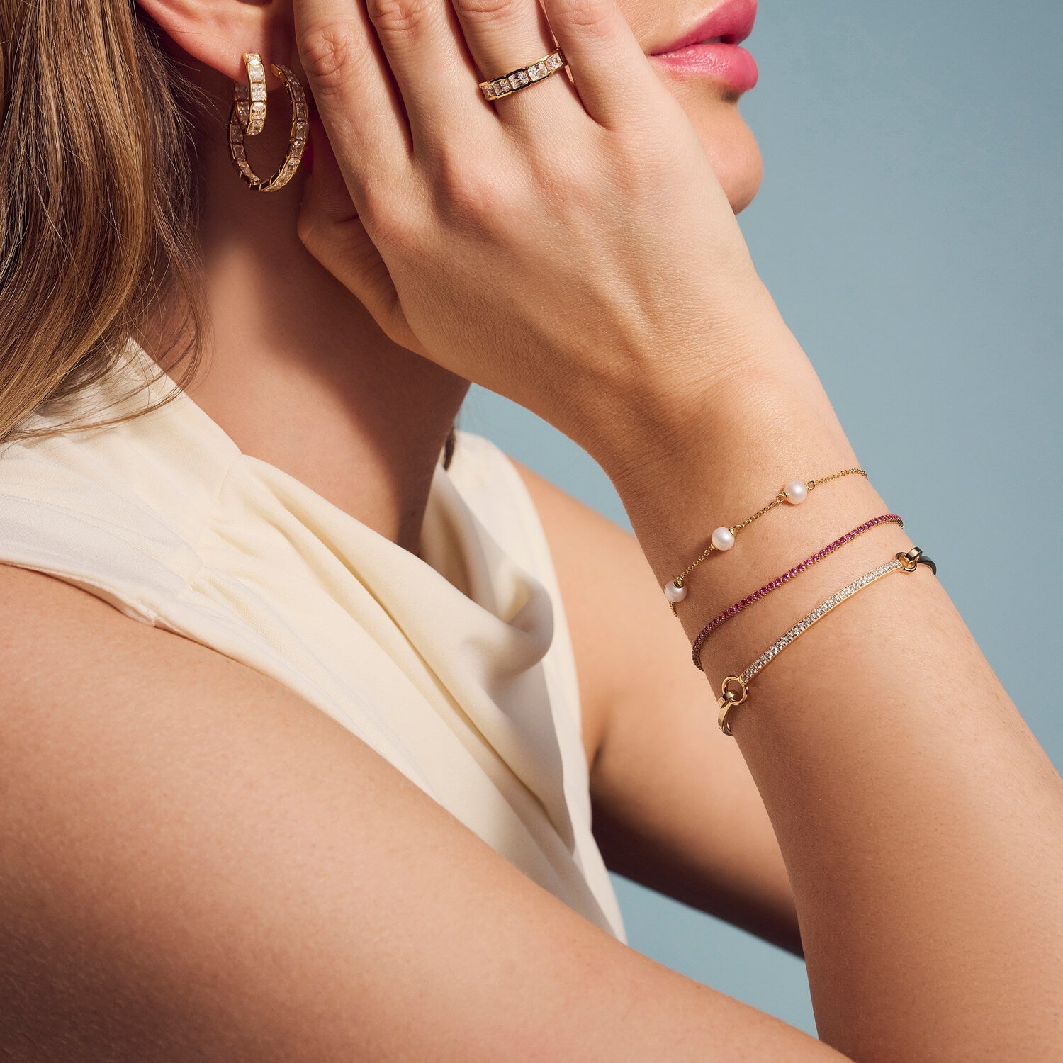 This Bracelet Padua Tre by Sif Jakobs pairs the elegance of freshwater pearls with the warmth of gold. Softly lustrous and timelessly feminine, it’s the perfect piece for bridal charm, layered styling, or elevated minimalism.