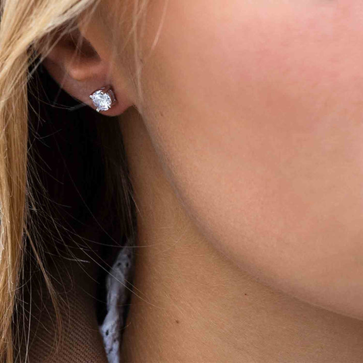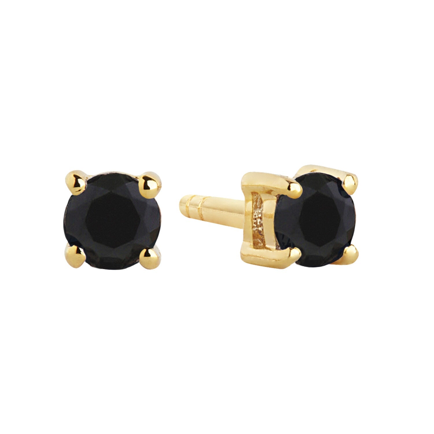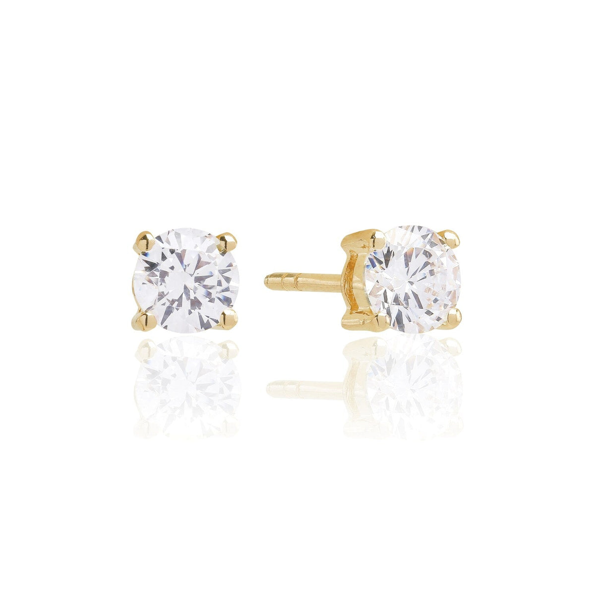 Handcrafted in 18-karat gold plated 925 Sterling Silver with a polished finish and facet cut blue zirconia. Diameter: 3 mm.