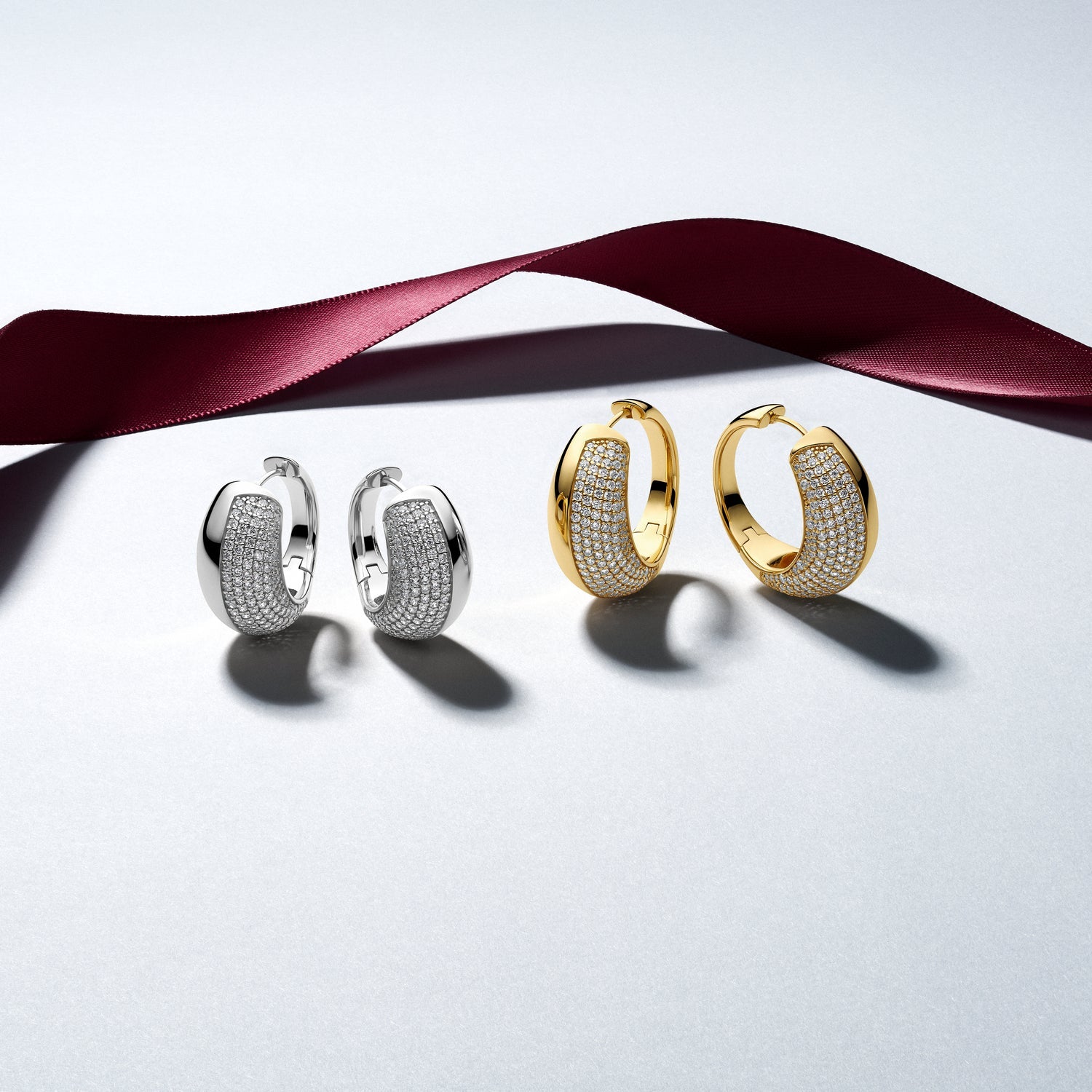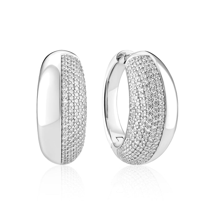These Earrings Fasano by Sif Jakobs are beautifully rounded statements, pairing bold dimensions with the sparkle of white zirconia. The curvature and polish reflect light from every angle, offering glamour in a refined, wearable form.