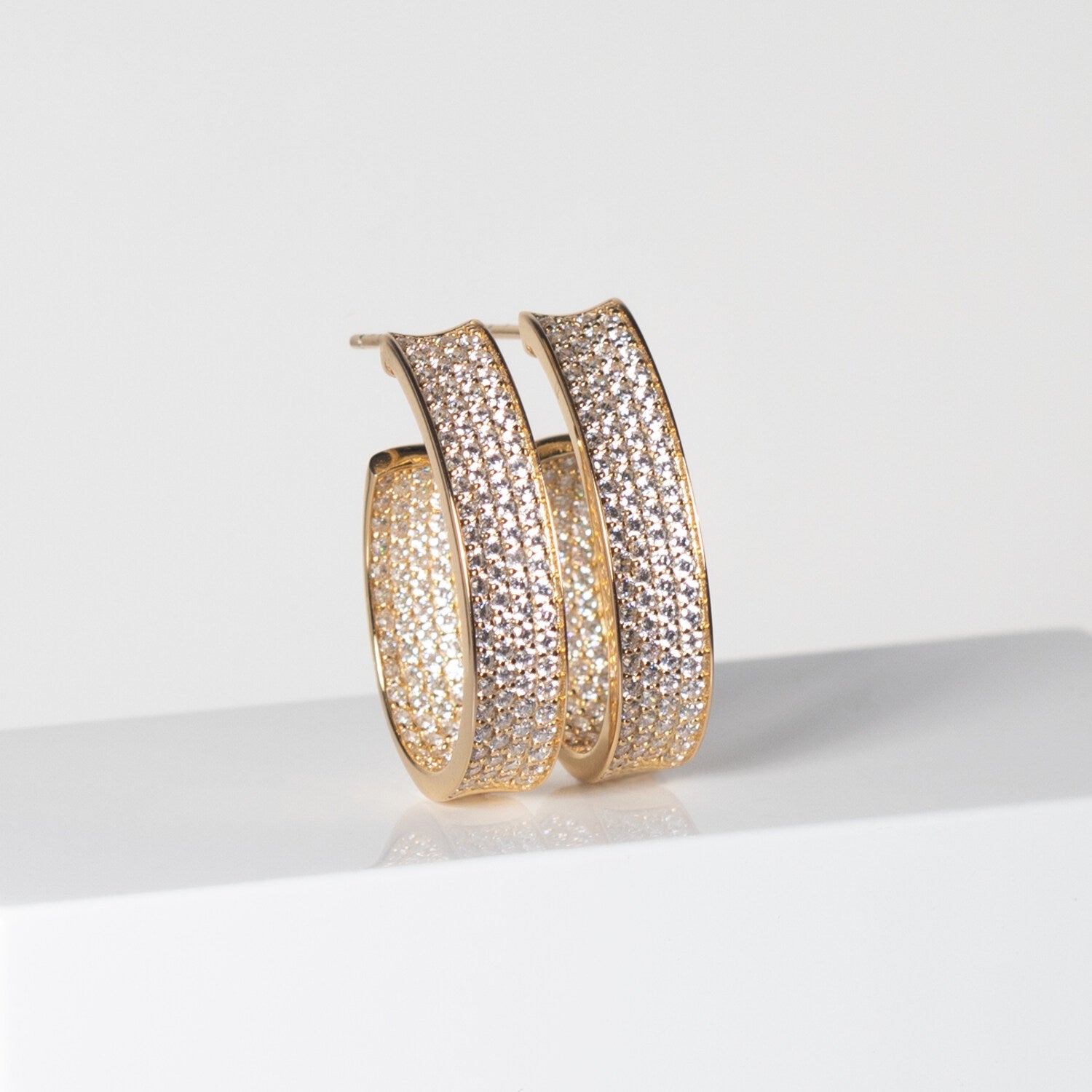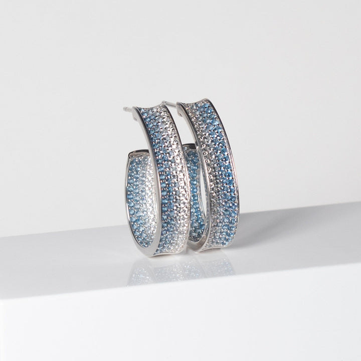 These Felline Concavo Earrings by Sif Jakobs are a graceful cascade of blue and white tones, creating a gentle gradient reminiscent of twilight skies over coastal waters. Their elongated form adds elegance, while the faceted zirconia catch light with every move, offering timeless allure with modern detailing.