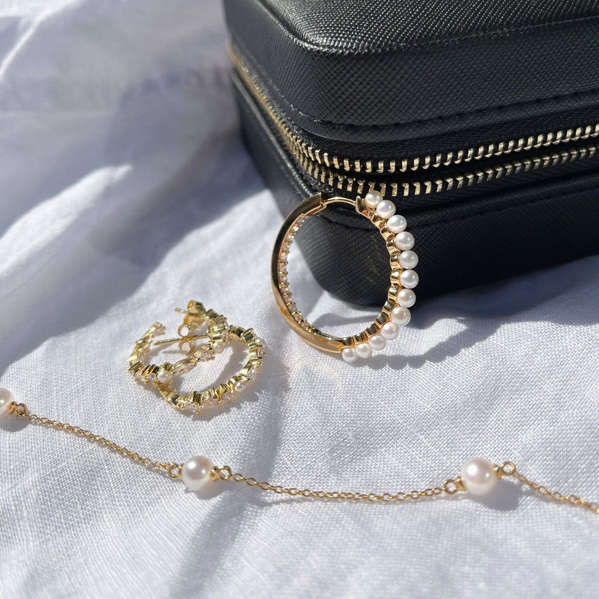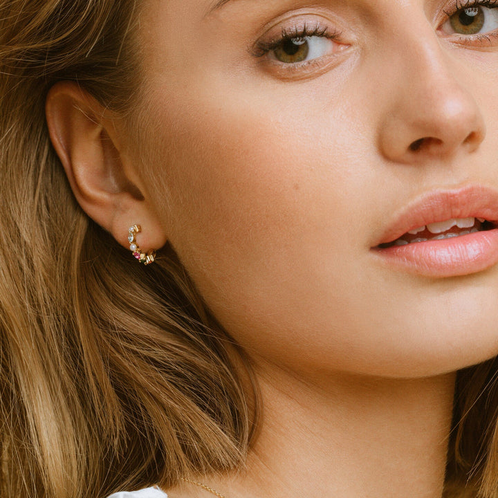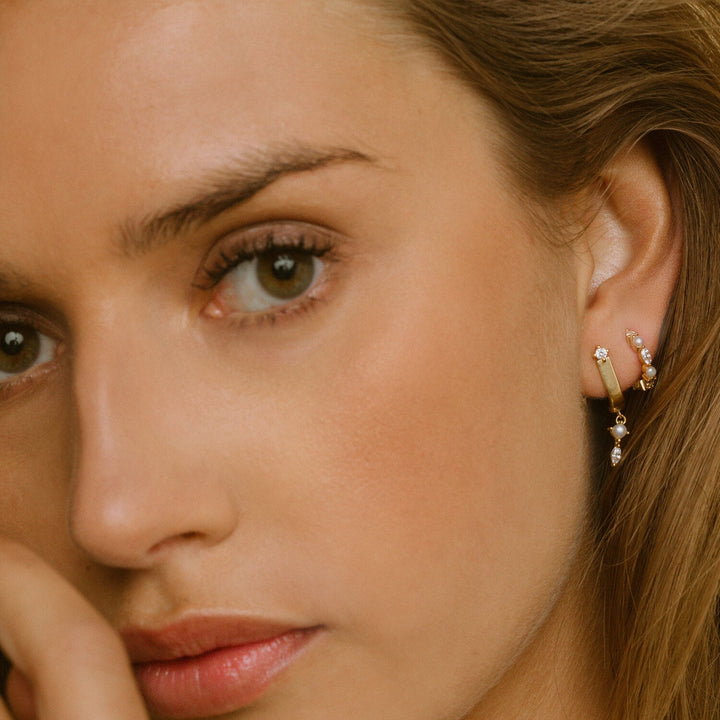These Adria Creolo Piccolo Earrings by Sif Jakobs are a petite expression of elegance, pairing delicate white zirconia with the natural beauty of freshwater pearls. Their compact form makes them ideal for refined styling with a hint of luminous charm.