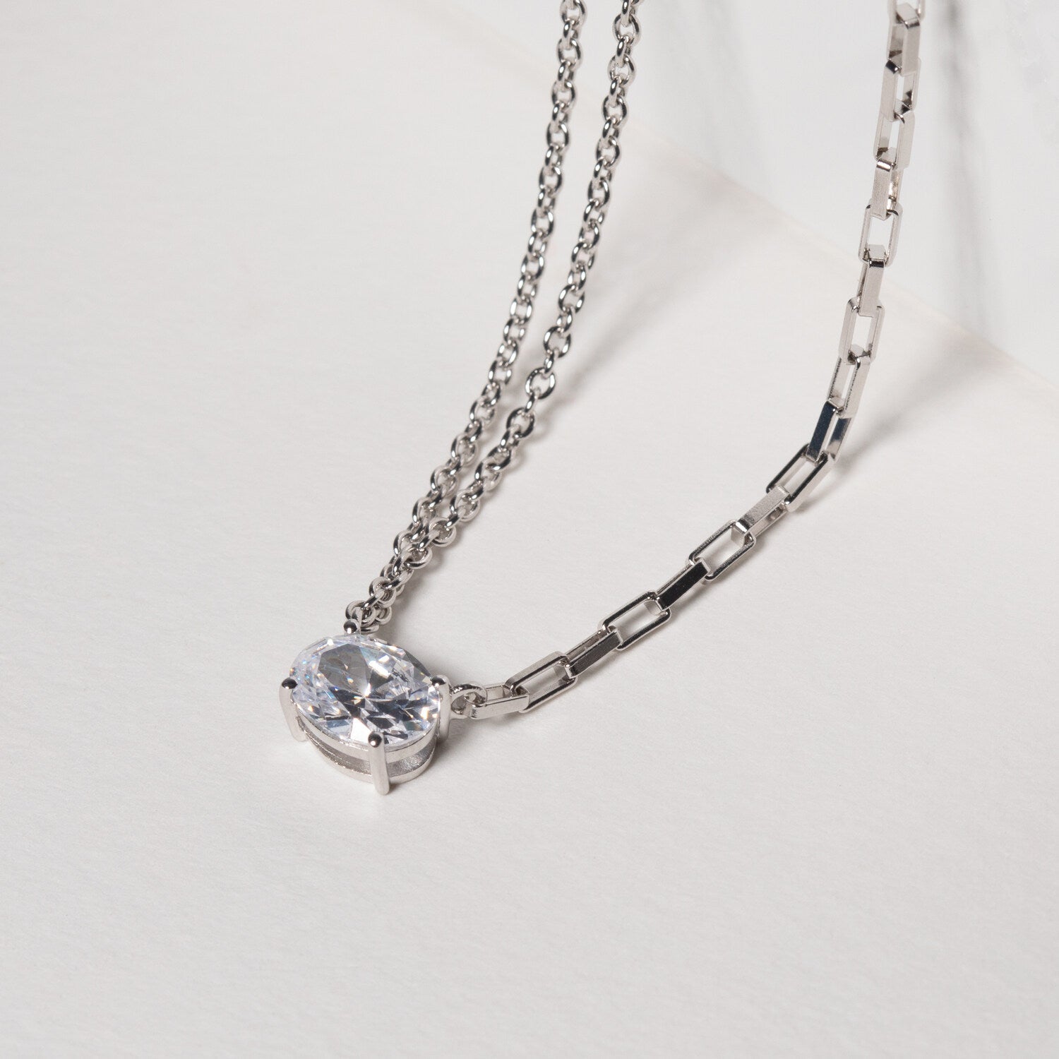 This Necklace Ellisse Uno by Sif Jakobs is an elegant staple with a modern twist. The oval pendant gleams with white zirconia, suspended from a fine chain to create an effortlessly luxurious look. Ideal for everyday layering.