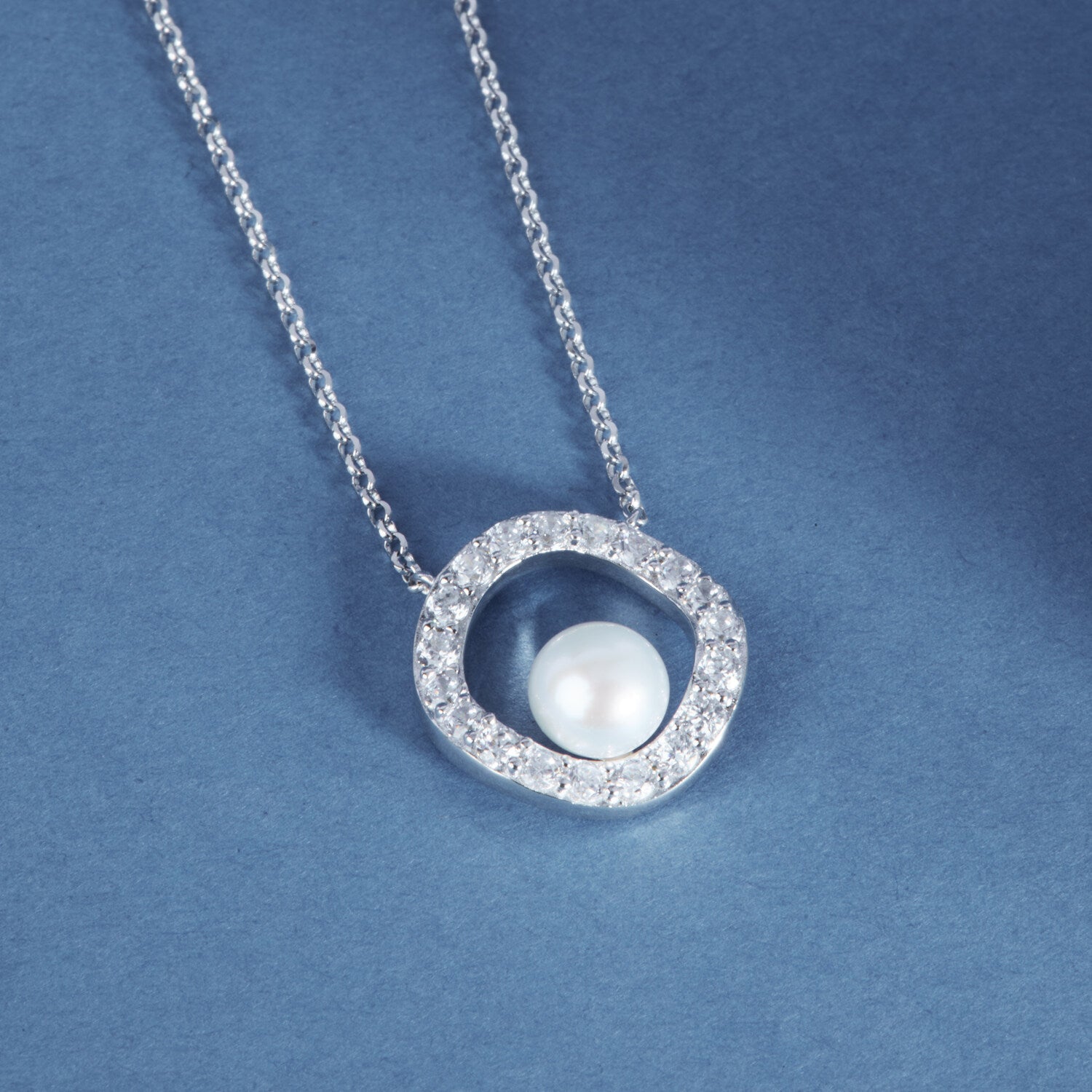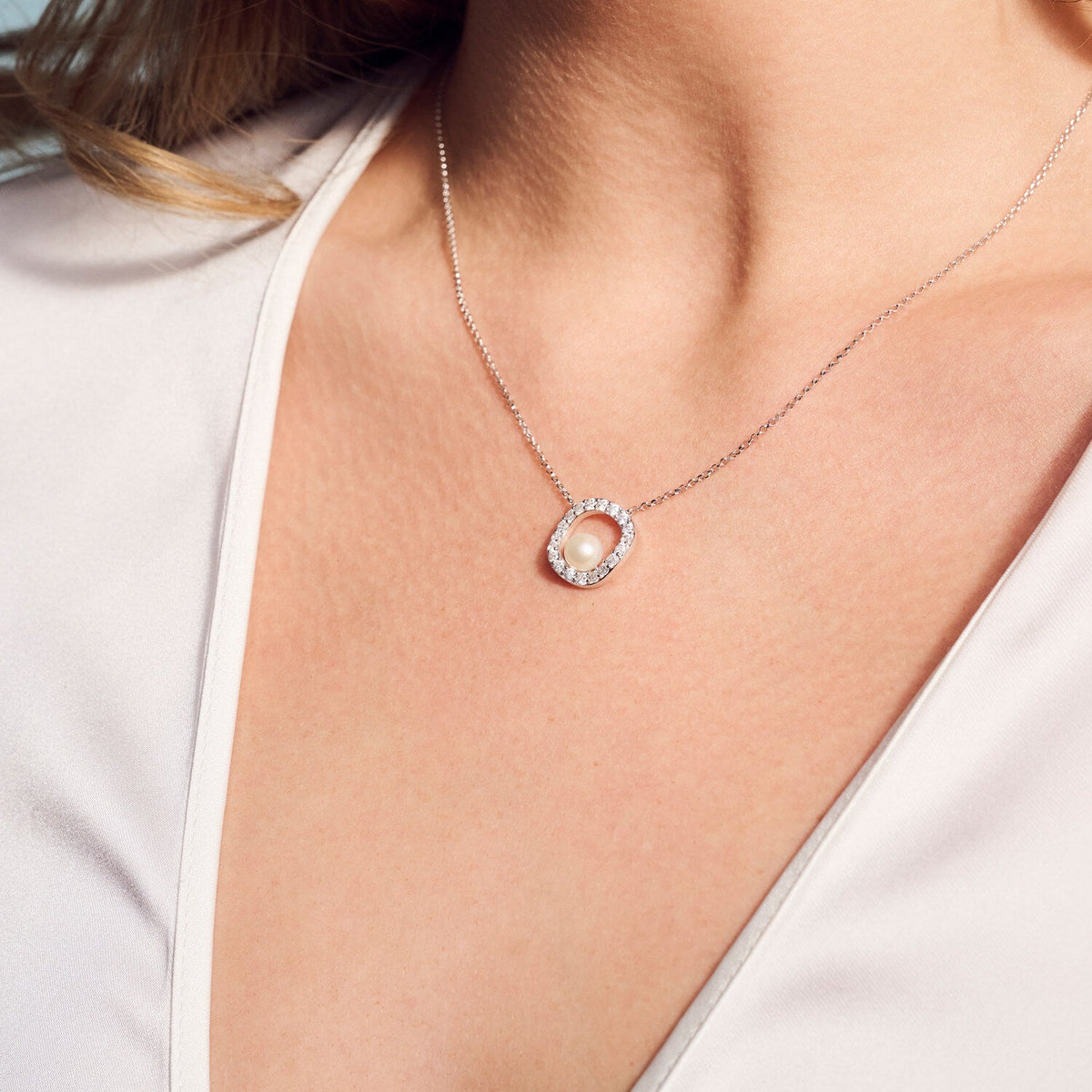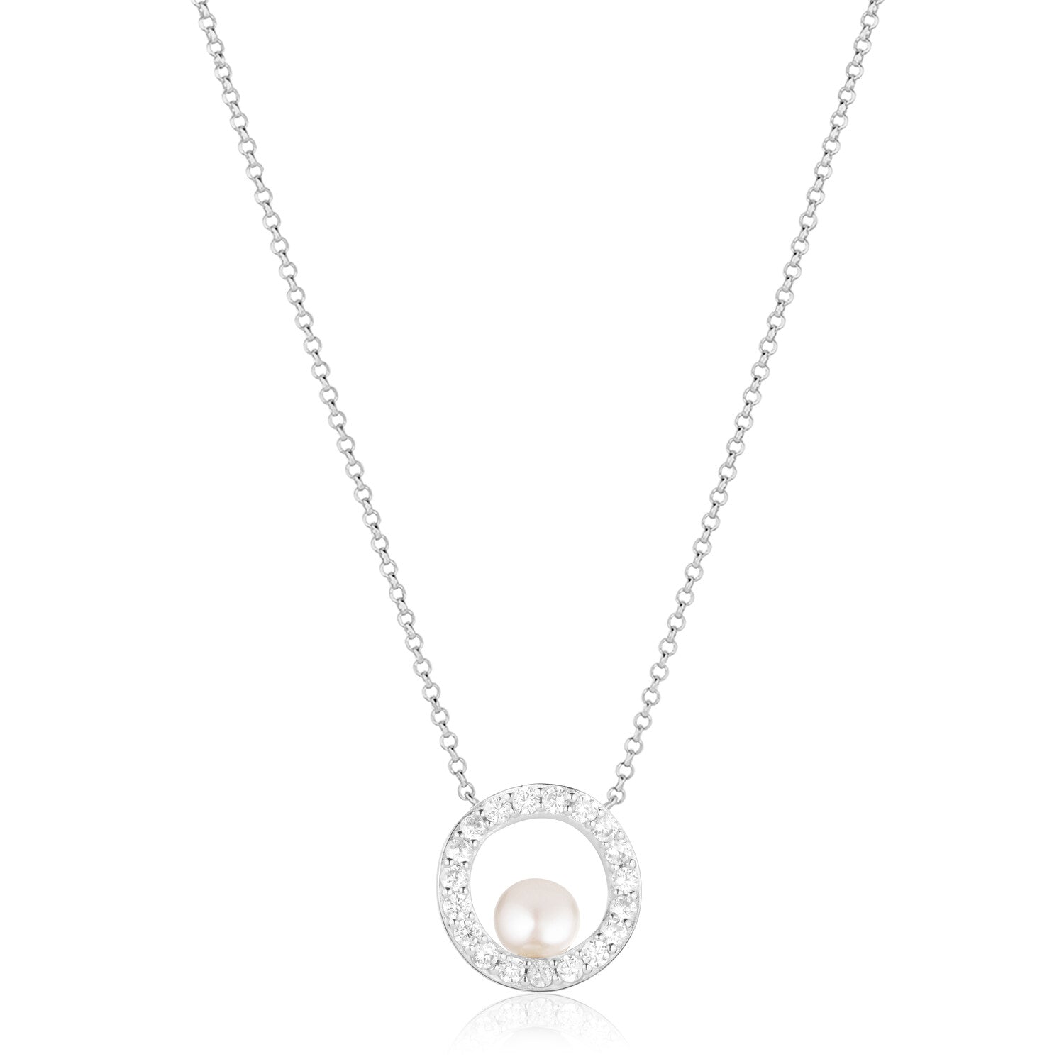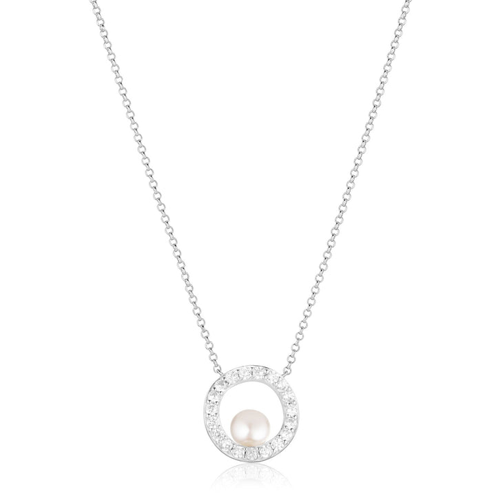 This Ponza Circolo Necklace by Sif Jakobs combines classic elegance with a modern twist. The circular pendant, set with radiant white zirconia and accented by a lustrous freshwater pearl, brings balanced beauty and timeless charm to everyday styling.