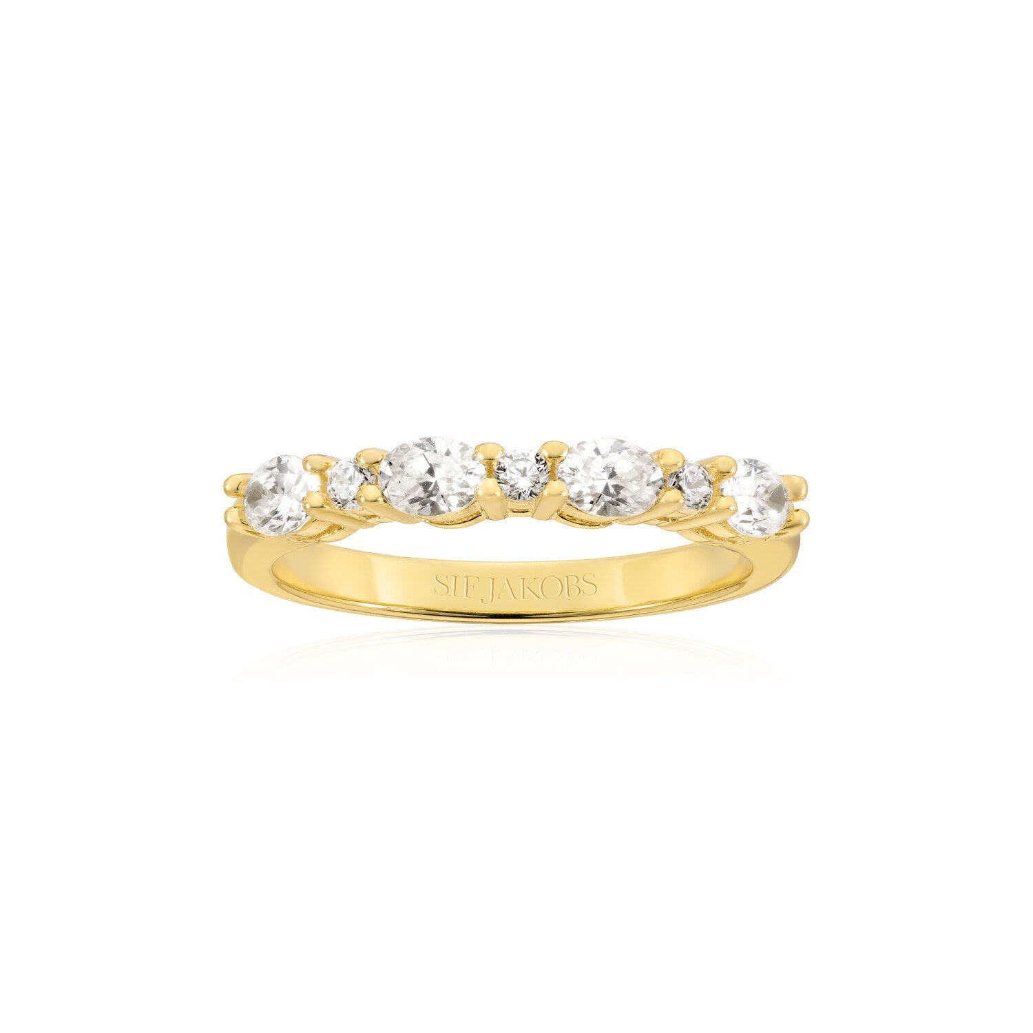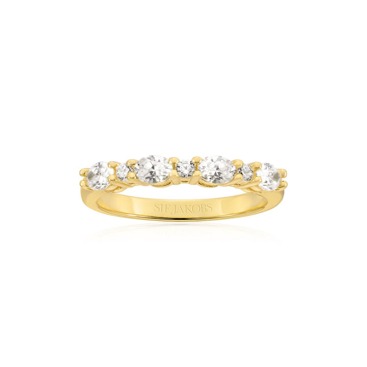 This Ring Ellera Ovale by Sif Jakobs fuses soft femininity with radiant sparkle. Its gently contoured band is adorned with faceted white zirconia, offering a continuous glint that feels both contemporary and timeless. A graceful piece perfect for every occasion.