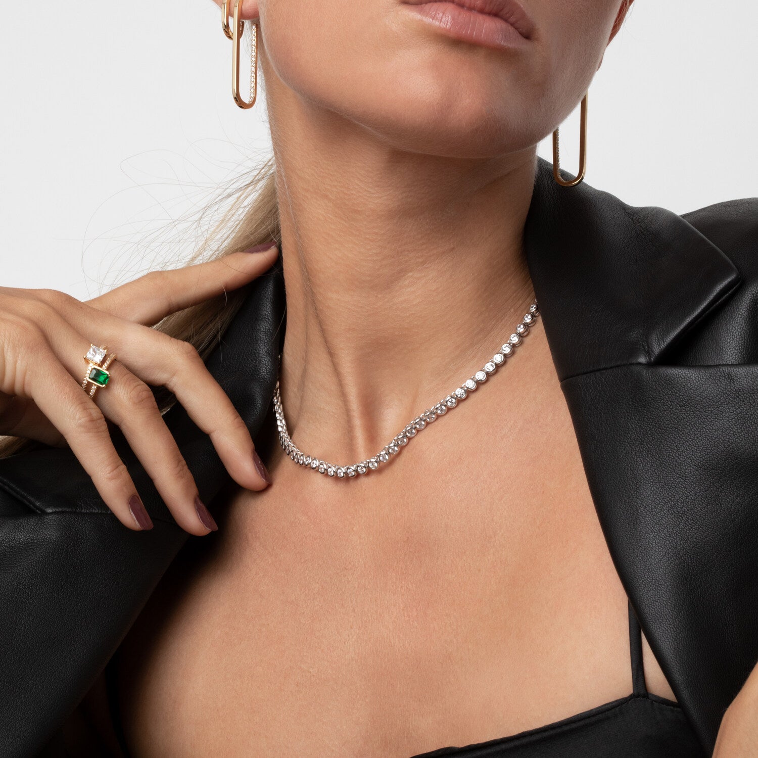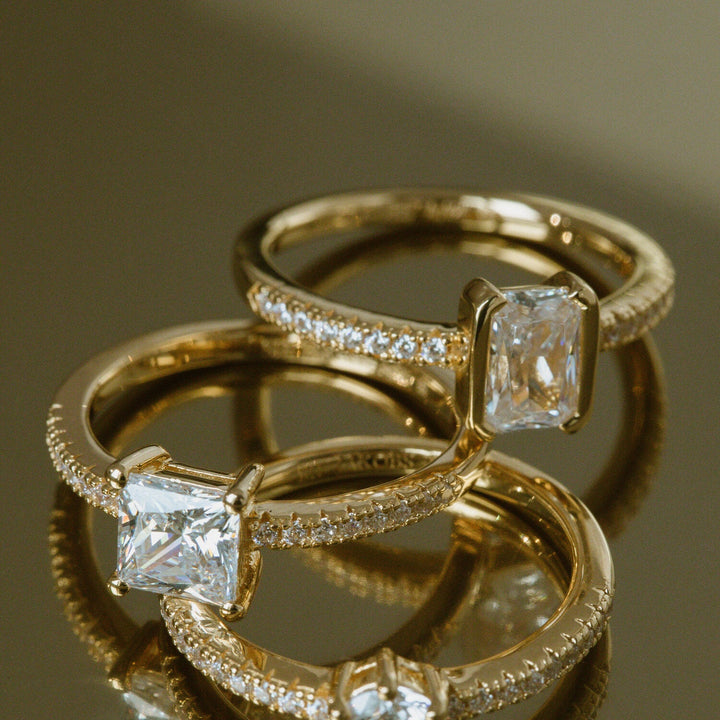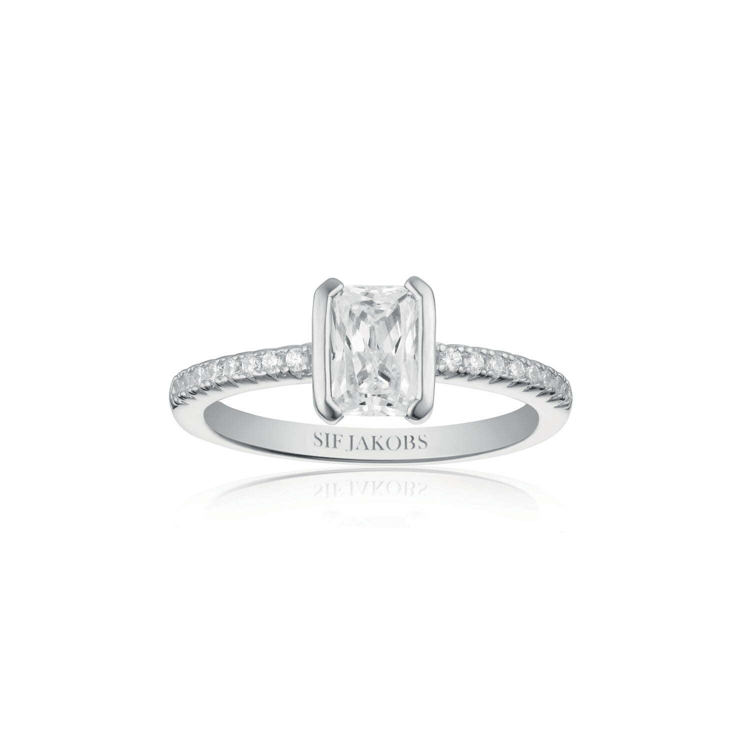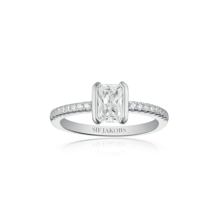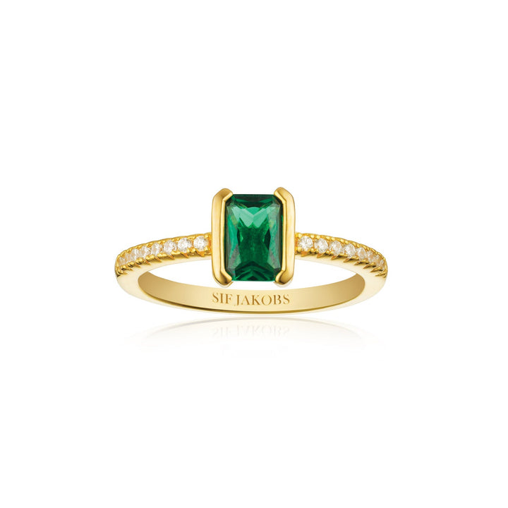 This Roccanova Piccolo Ring by Sif Jakobs brings a refined geometry to your ring collection. The combination of green emerald cut and white zirconia creates a visual tension between structure and sparkle. Its compact yet striking design offers a symbolic expression of contrast and harmony.