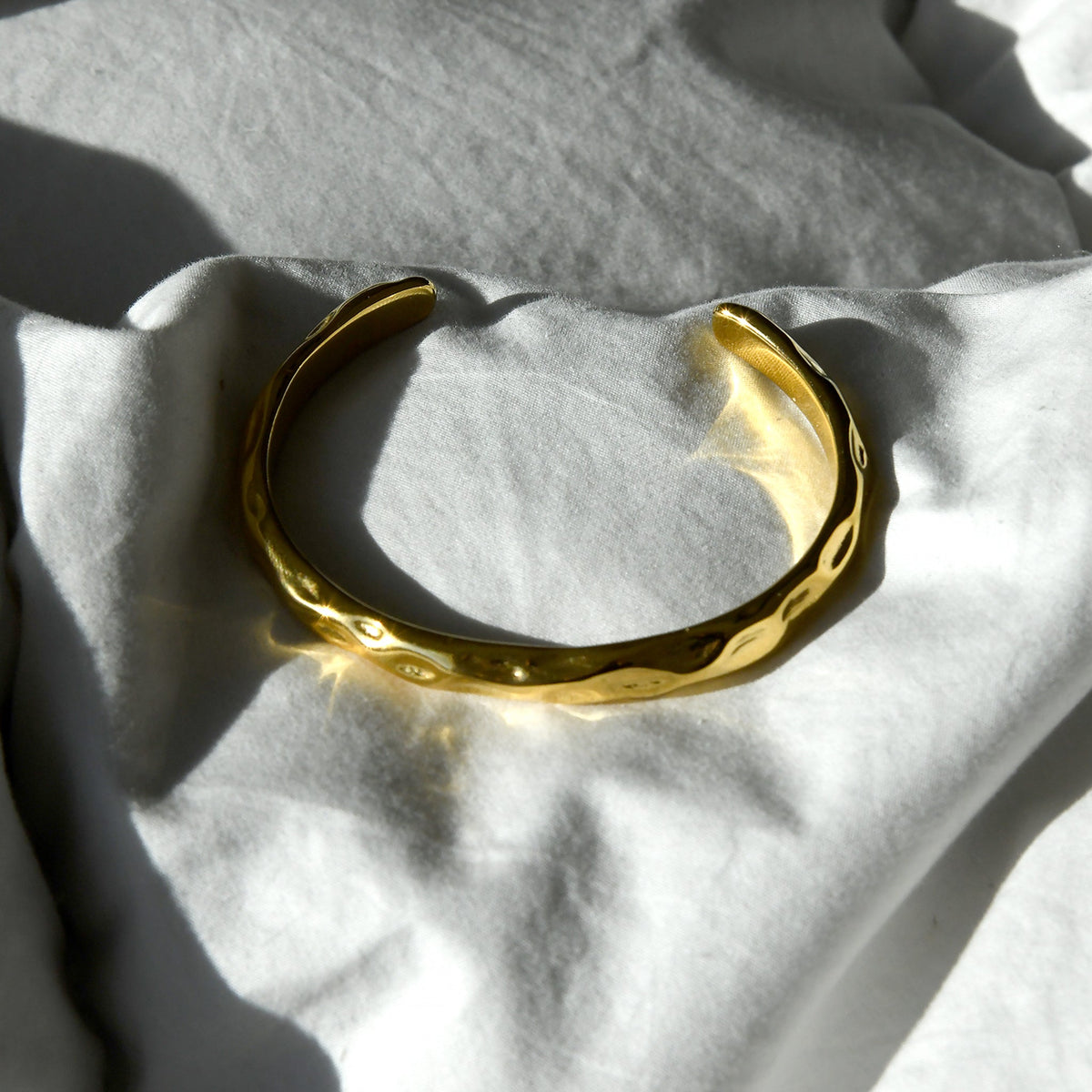 This Fierce Bracelet by Adrianne Marie is bold, unapologetic, and designed to turn heads. The hand-hammered texture creates a raw yet refined look, embodying a confident spirit and fearless style. Perfect for stacking or wearing solo, it's a powerful statement of individuality and bold femininity.