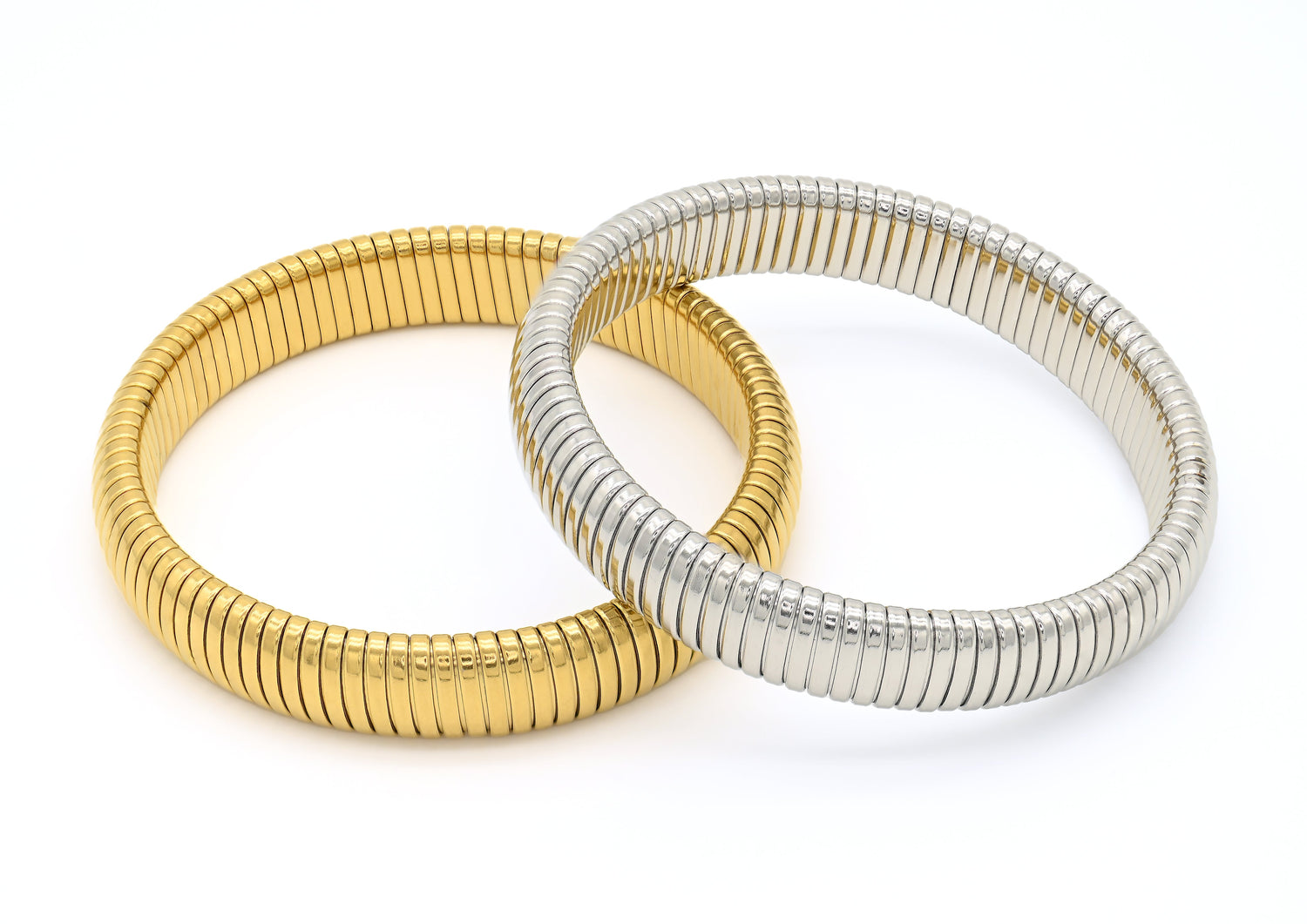 These Viper Bangles by Adrianne Marie strike the perfect balance between edge and comfort. Their stretch cuff design hugs the wrist with ease, while the bold metallic finish gives off a fierce, modern energy. Ideal for layering or making a standalone statement.