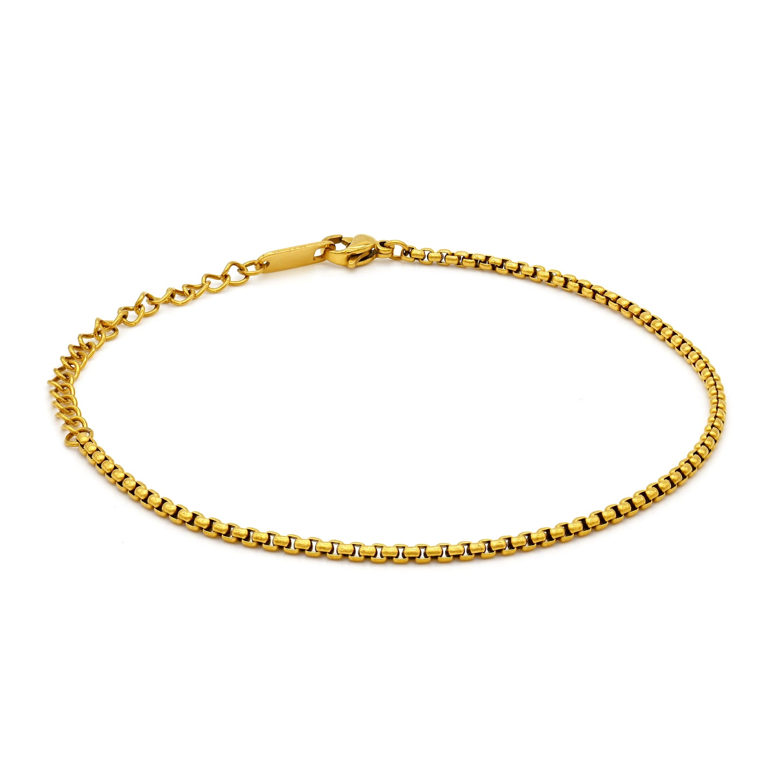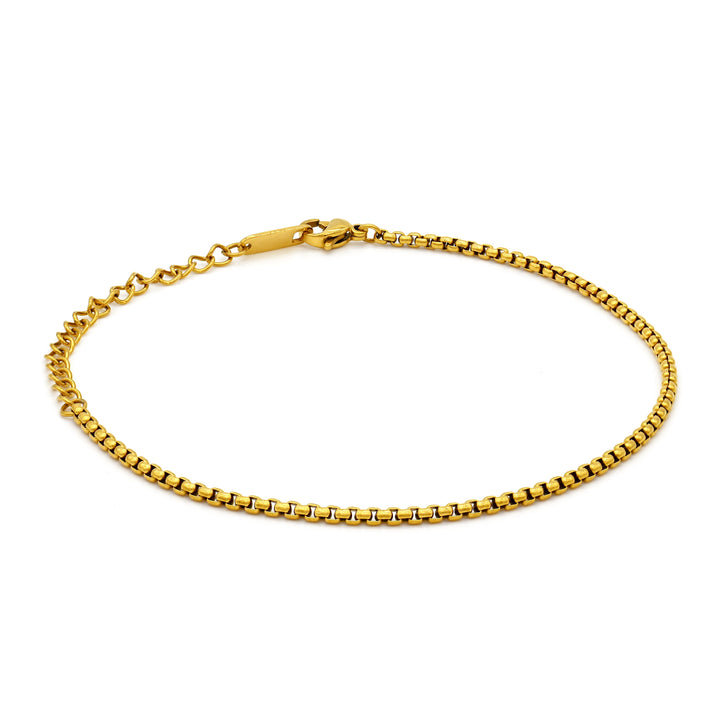 This Harper Bracelet by Adrianne Marie features a simple box chain in a luxurious gold finish, perfect for layering or wearing alone. Its lightweight and minimalist profile makes it an everyday essential that seamlessly blends with both casual and formal attire.