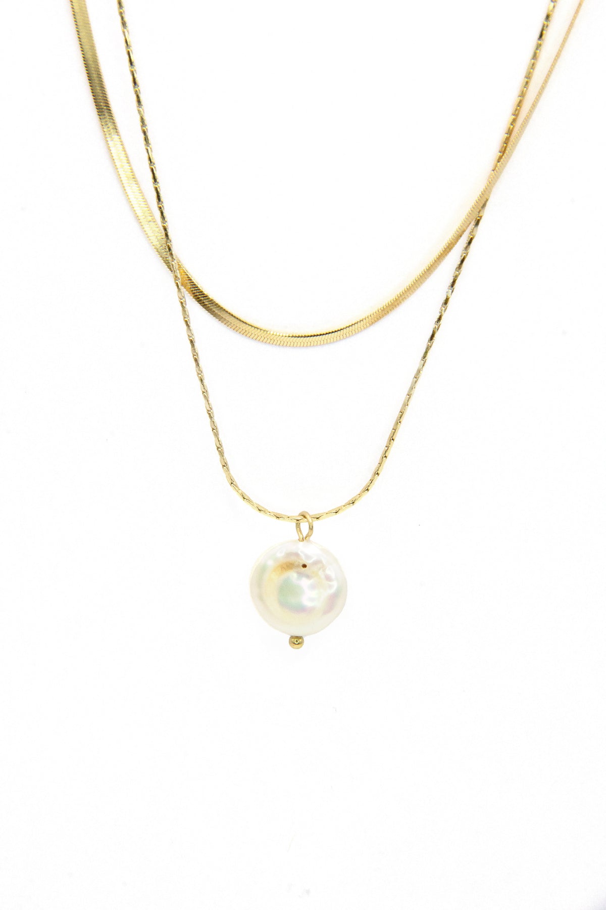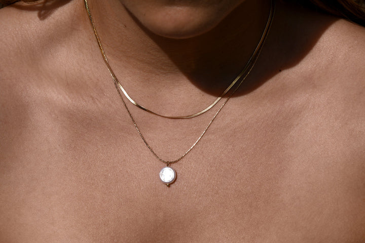 This Luna Necklace by Adrianne Marie captures the essence of understated elegance. With its delicate double-layered design and luminous pearl centerpiece, this necklace exudes celestial charm and modern grace. Ideal for elevating both day and evening looks, it's a versatile piece that effortlessly enhances your natural glow.