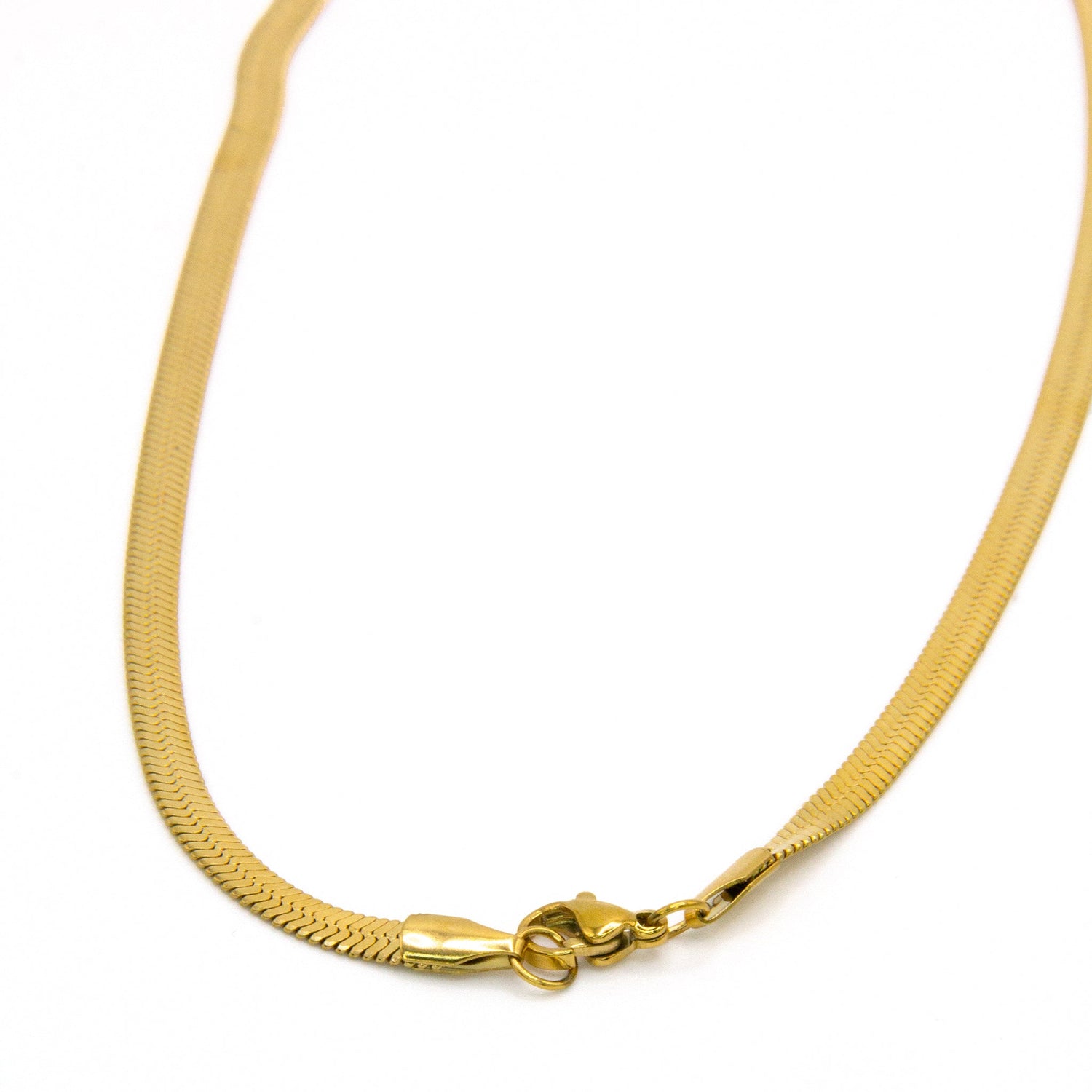 Gold-tone herringbone chain with a width of 3mm. Chain length measures 16 inches. All Adrianne Marie pieces are crafted with 18k gold PVD over stainless steel