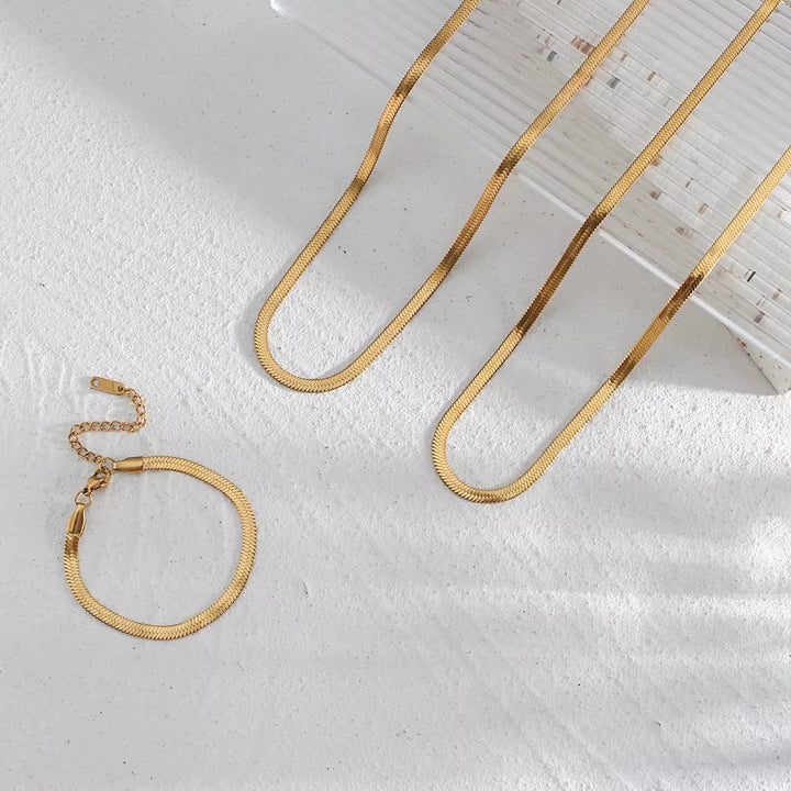 This Cobra Necklace by Adrianne Marie exudes sophistication and glamour through its luxurious herringbone design. Effortlessly chic and versatile, it brings a modern elegance to your style, perfect for elevating casual and formal ensembles alike. Symbolizing elegance and refined confidence, this necklace is an essential investment piece, ensuring you remain effortlessly stylish season after season.