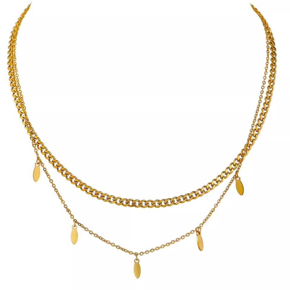 Double-layer gold-tone chain. Chain measures 15 inches with a 2-inch extender. All Adrianne Marie pieces are crafted with 18k gold PVD over stainless steel