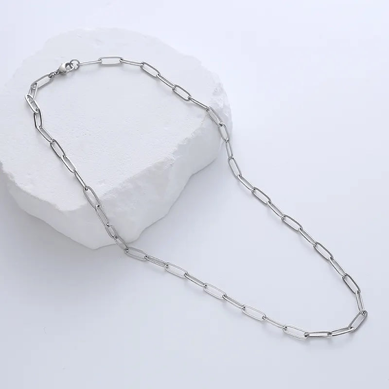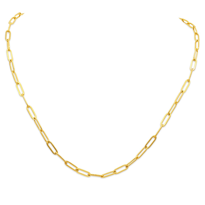 This Candace Necklace by Adrianne Marie exudes contemporary elegance with its sleek paperclip design, harmonizing beautifully with its matching Candace bracelet. Perfect for making a subtle statement, this necklace brings a chic, modern aesthetic to elevate your everyday style. Essential and effortlessly stylish, it is ideal for layering or wearing alone as a distinct focal point.
