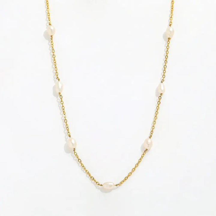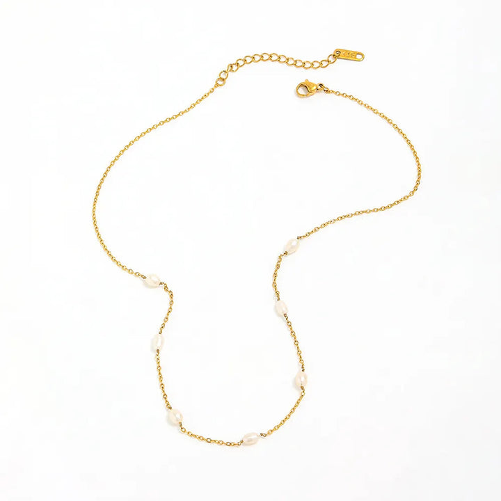 Gold-tone chain accented with genuine pearls. Chain length: 16 inches with a 2-inch extender. All Adrianne Marie pieces are crafted with 18k gold PVD over stainless steel