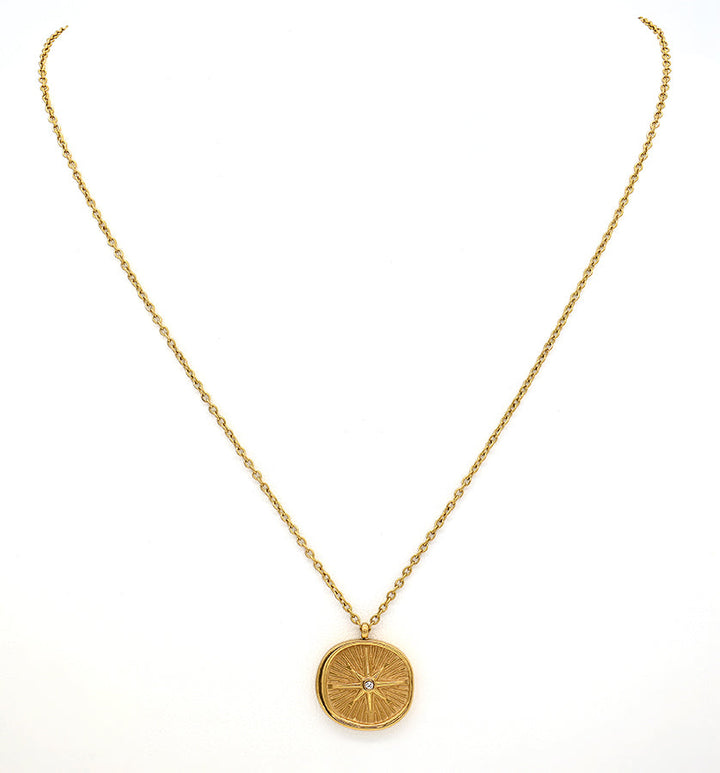 Gold-tone chain with a North Star pendant. Chain length is 18 inches; pendant size measures 0.5 inches. All Adrianne Marie pieces are crafted with 18k gold PVD over stainless steel