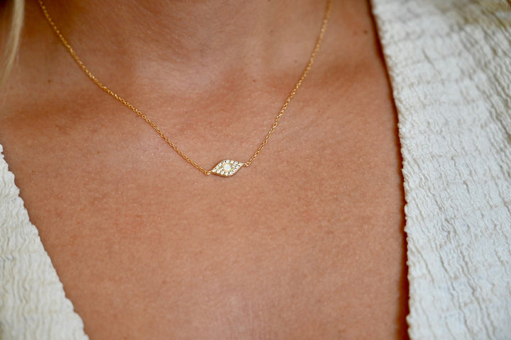 This Olivia II Necklace by Adrianne Marie beautifully combines fashion with symbolism. Its captivating evil eye pendant, intricately detailed with shimmering micro pavé crystals and an enchanting opal center, provides both protection and trendy elegance. Designed to ward off negative energy, this dainty yet impactful necklace ensures you'll radiate positive vibes and effortless style wherever you go.