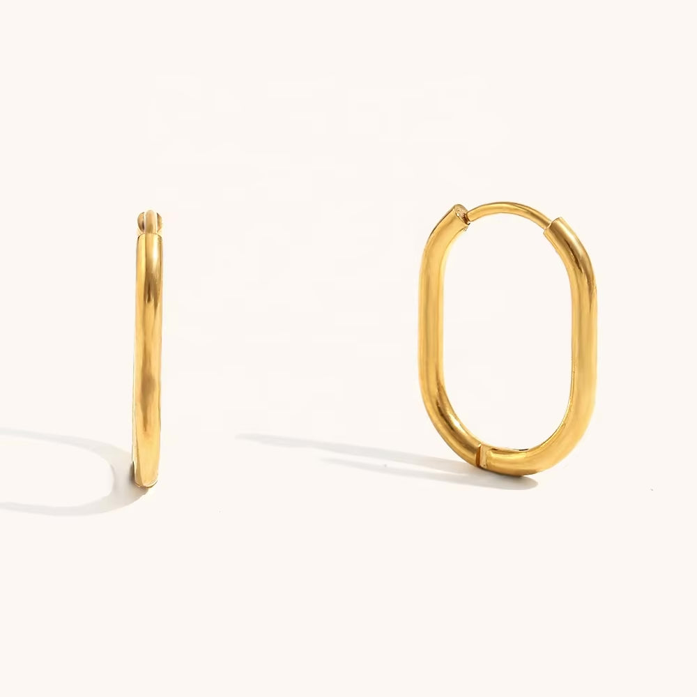 These Alice Hoops by Adrianne Marie offer timeless sophistication in a sleek, oval huggie design. Compact and comfortable at 14mm, these earrings are designed to hug the ear delicately while delivering high-impact polish. Their elongated form flatters all face shapes, making them an everyday essential with staying power. Lightweight and versatile, Alice will become a go-to favorite.