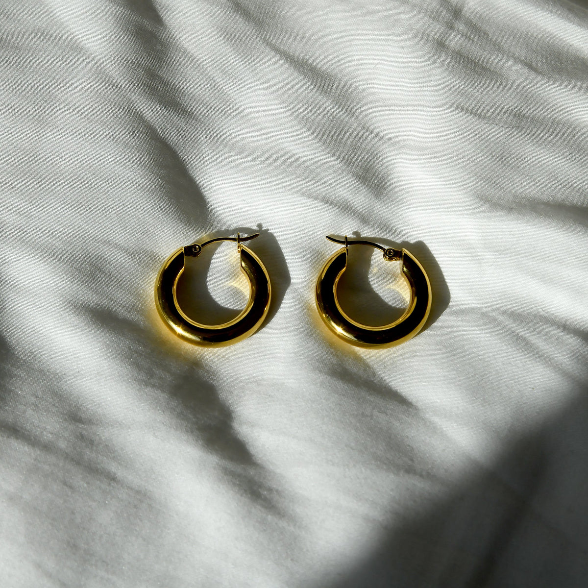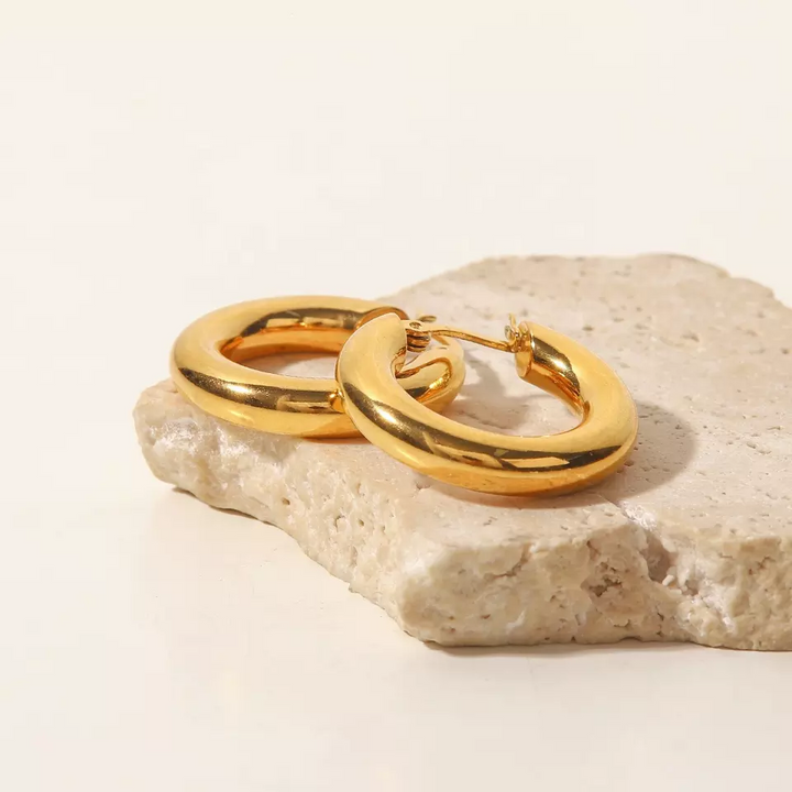 These Coraline Hoops by Adrianne Marie redefine classic boldness with a chunky, circular silhouette that commands attention. With a height and diameter of 2.6cm, they strike the ideal balance between statement and sophistication. Coraline is for those who want their essentials with extra impact—versatile, bold, and beautifully wearable.