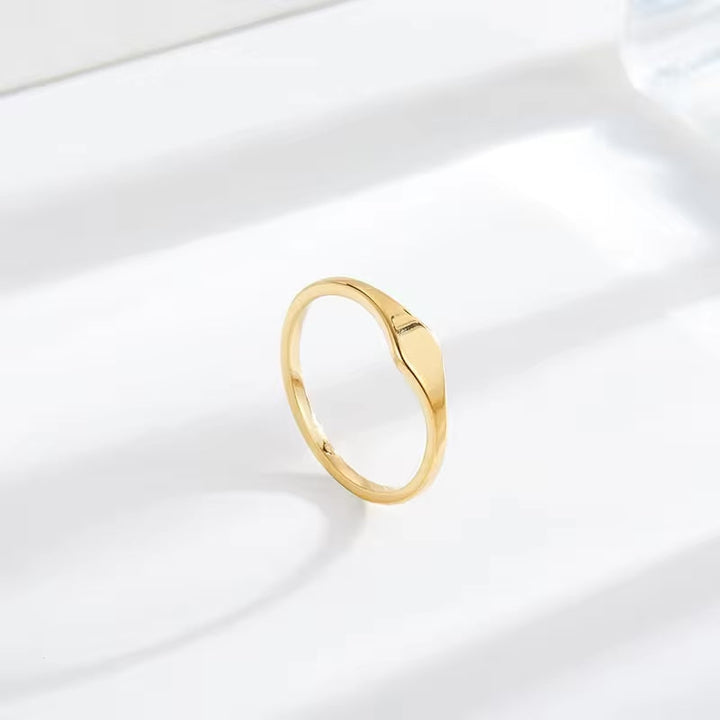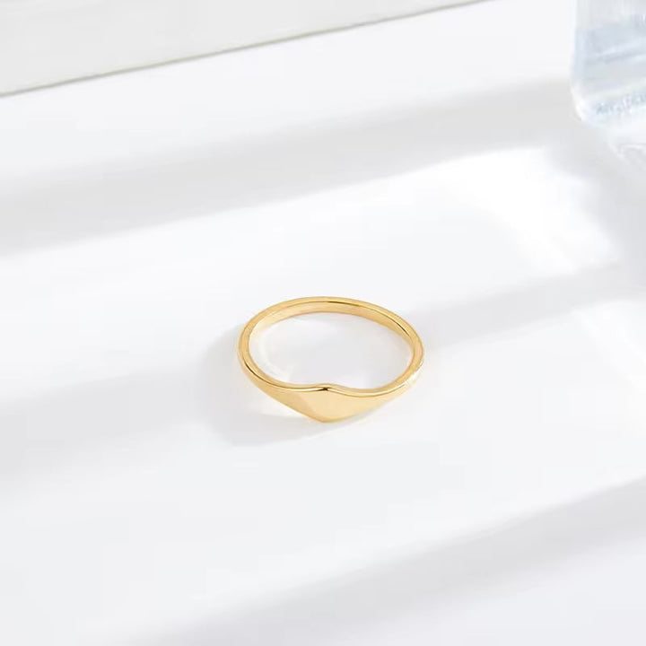 Gold-tone mini signet ring. Size 5. Low-profile design for everyday wear. All Adrianne Marie pieces are crafted with 18k gold PVD over stainless steel