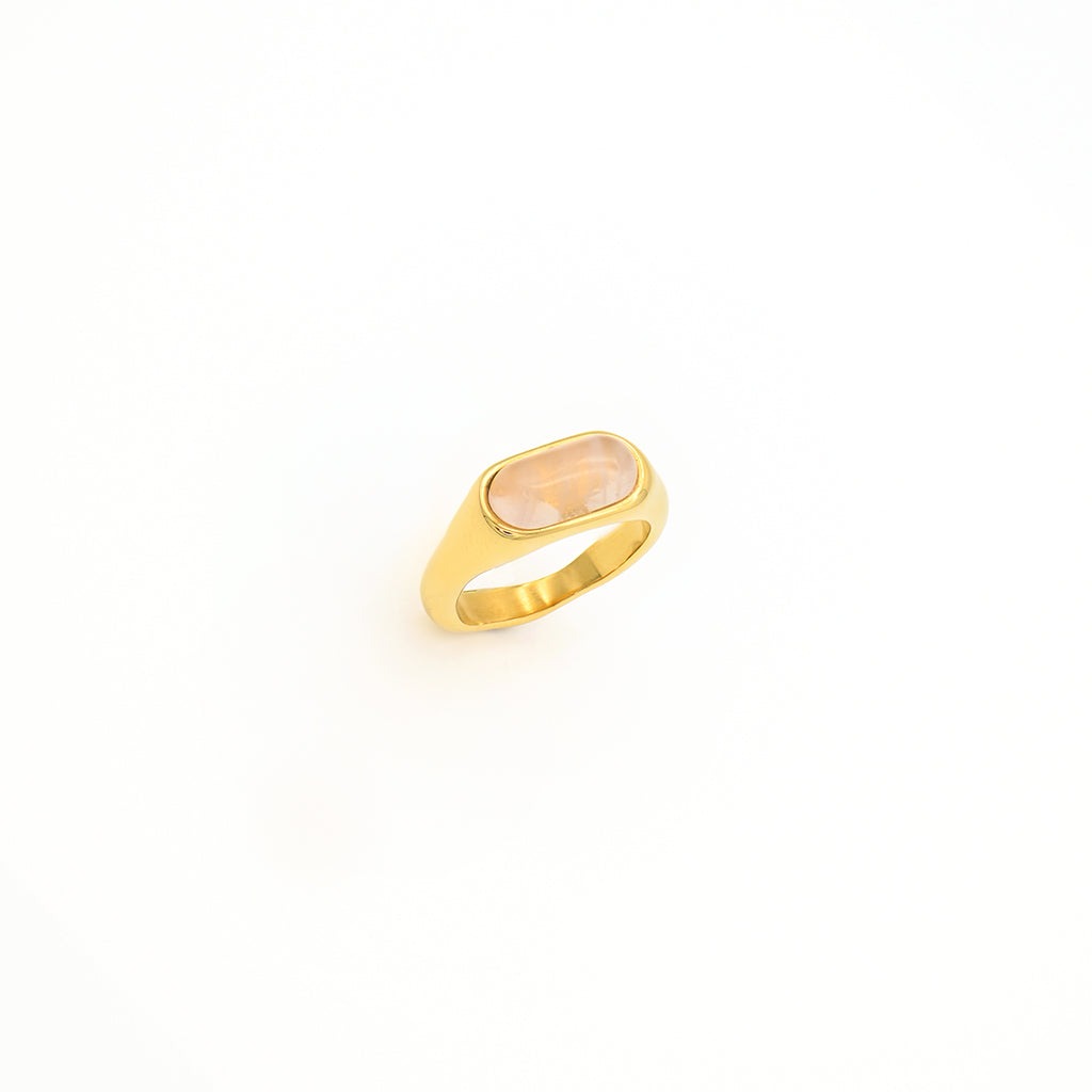 The Rose Ring by Adrianne Marie is a blooming expression of love and luxury. Featuring a generously sized rose quartz centerpiece set in a bold gold band, this ring captures romance with a glamorous edge. A stunning accessory that evokes softness and strength.