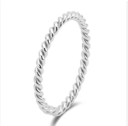 Braided silver-tone metal. 2MM band width. Available in ring size 5. All Adrianne Marie pieces are crafted with 18k gold PVD over stainless steel