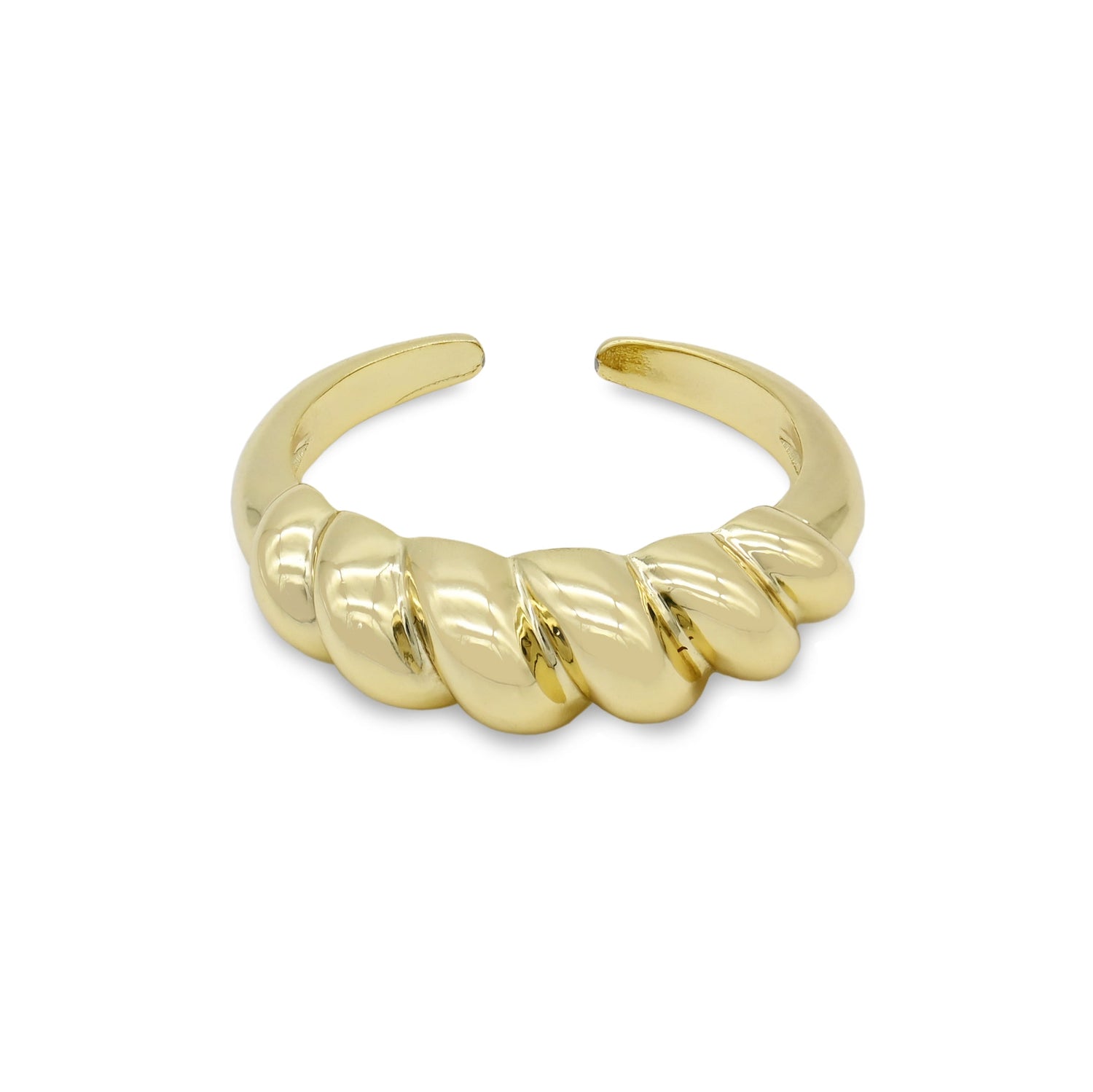 Made in gold-tone metal with a croissant-inspired open design. Adjustable sizing. All Adrianne Marie pieces are crafted with 18k gold PVD over stainless steel