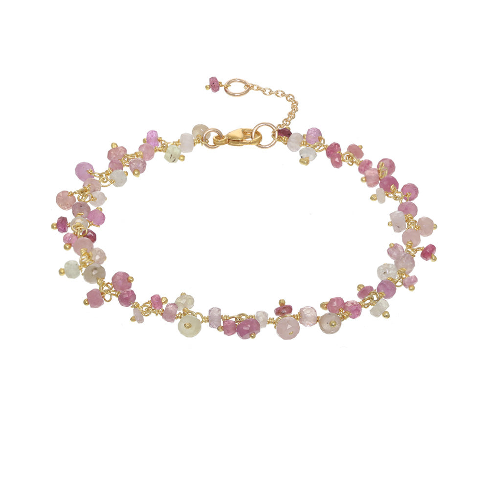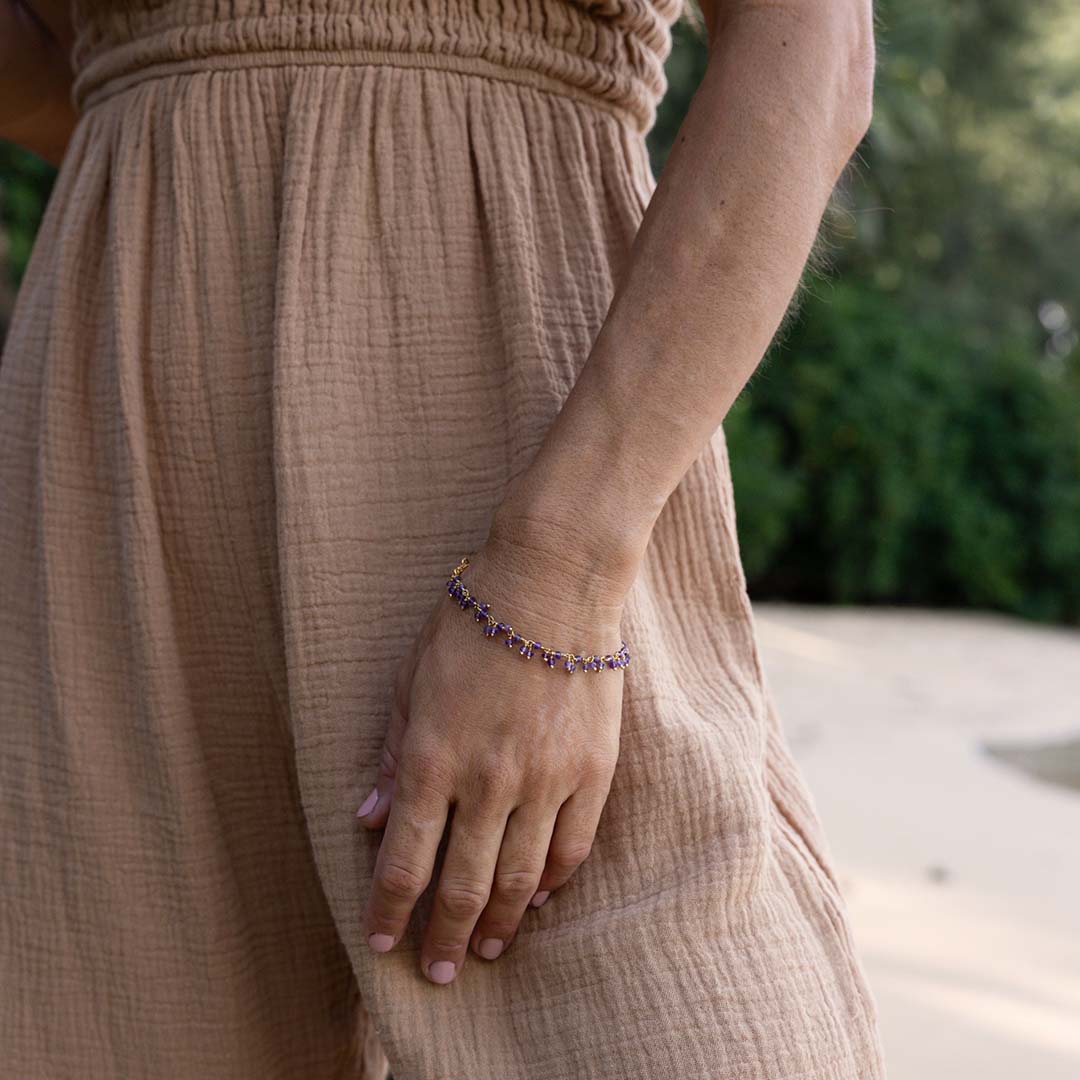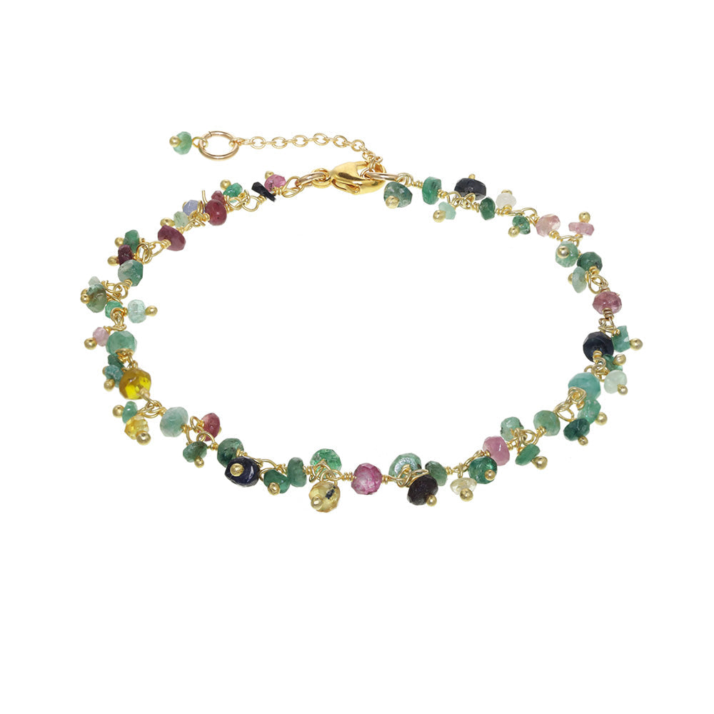 This Gemstone Dangle Bracelet by Catherine Weitzman sparkles with joyful movement and color. A playful cascade of semi-precious stones dances along a fine gold-fill chain, making it the perfect accessory for layering or wearing solo. Its vibrant energy and delicate craftsmanship make it a standout.