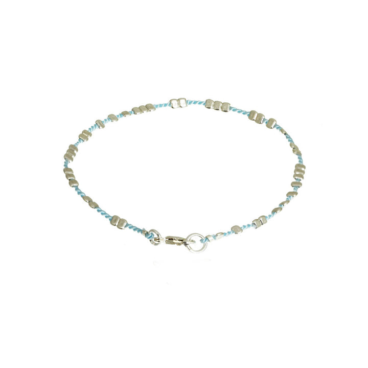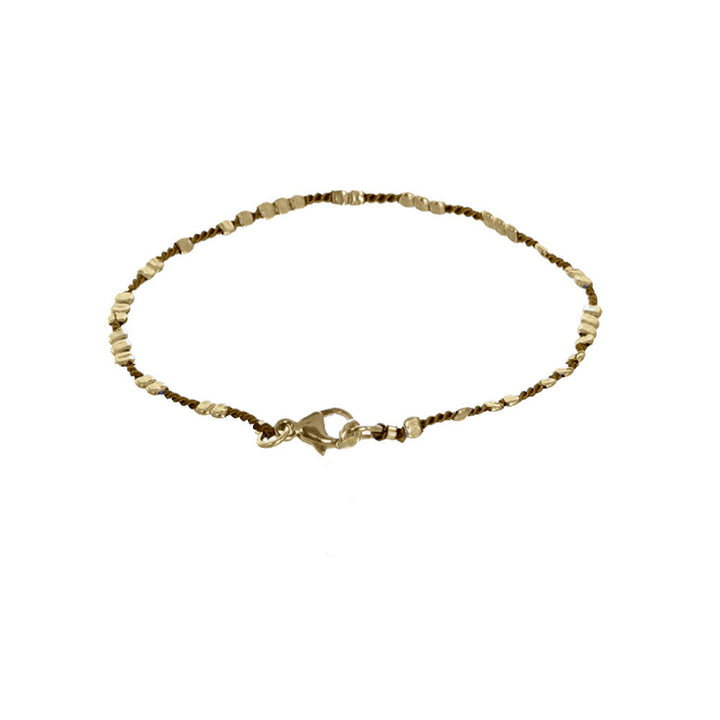This Hammered Cord Bracelet by Catherine Weitzman pairs tactile hammered beads with richly colored silk cord. Whether worn alone or stacked, its bold yet minimal design brings unique texture and color to the wrist.