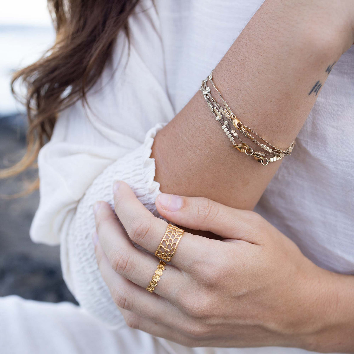 For twenty years, Catherine Weitzman has created jewelry that is inspired by the infinite beauty of nature and handmade in paradise. Catherine's commitment to sustainability is reflected in her use of found objects, recycled metals, and responsible suppliers. Her signature creations seamlessly blend elegance with wearability, appealing to present trends while maintaining timeless style. All jewelry is handcrafted by a team of gifted artisans at her studio in Hawaii.
