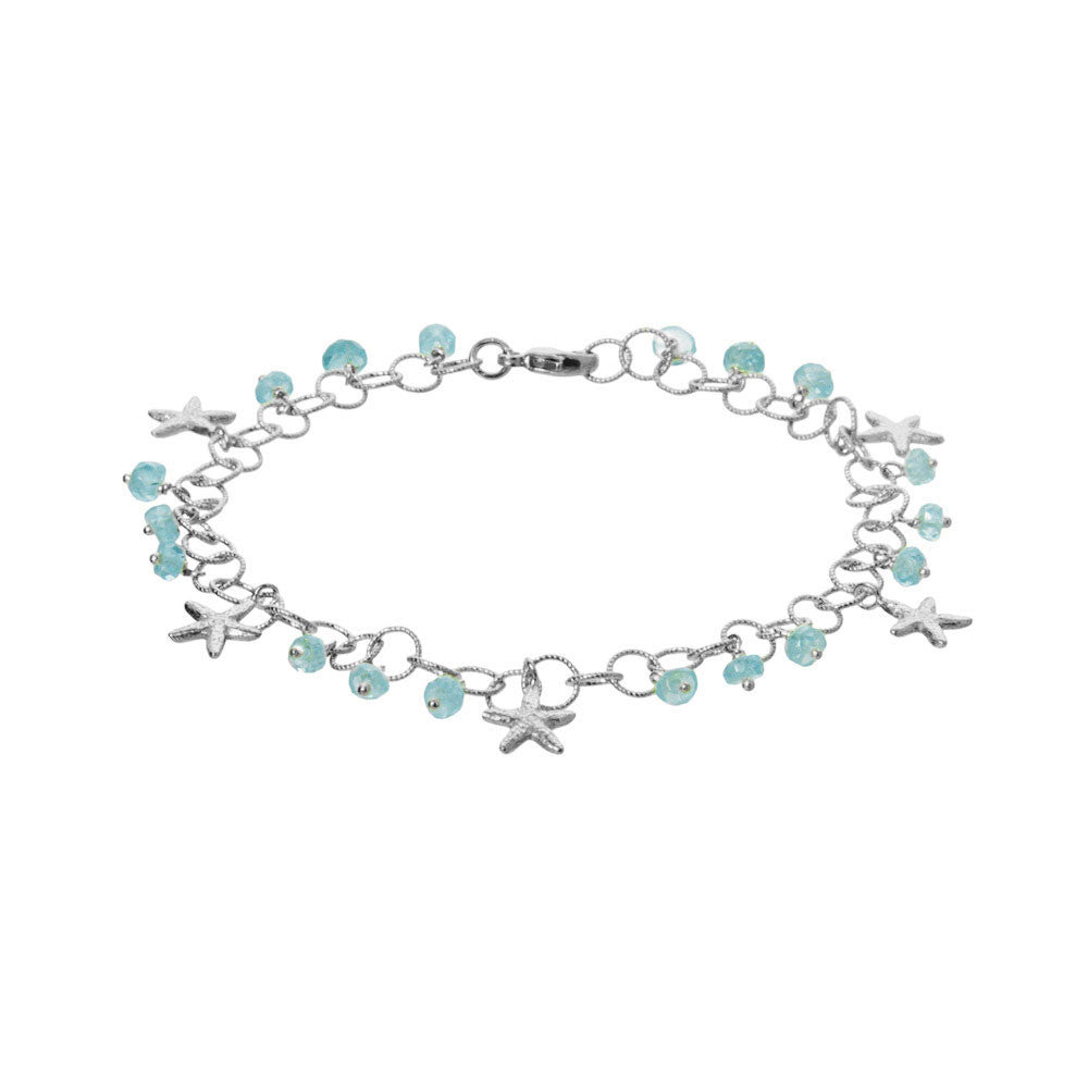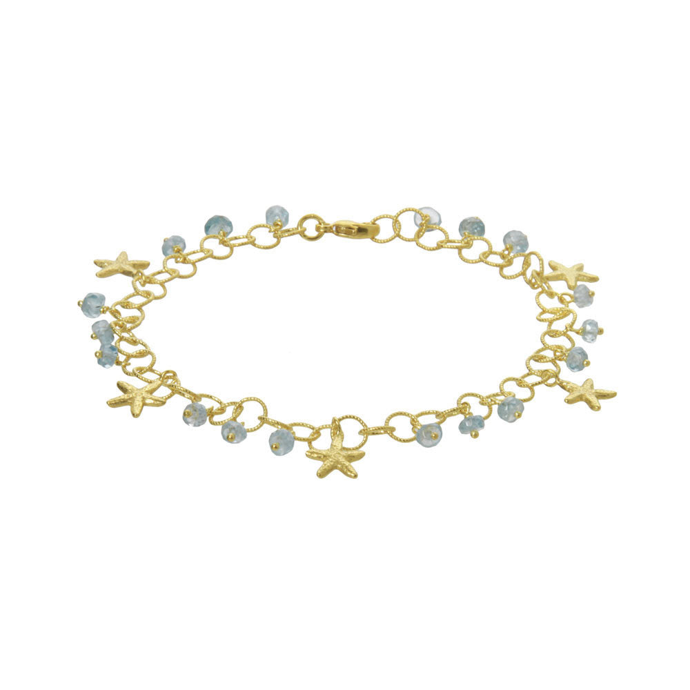 This Mini Sealife Charm Bracelet by Catherine Weitzman is a charming ode to the ocean’s delicate treasures. Featuring miniatures of a sand dollar, seahorse, shell, and starfish, each charm is cast from real sea finds and paired with glimmering aquamarine rondelles. This piece brings the feeling of the shore wherever you go, whether worn solo or stacked. A petite celebration of marine beauty, it’s perfect for beach lovers and dreamers alike.