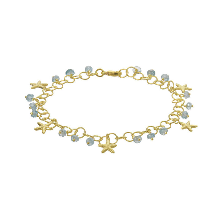 Handcrafted in Recycled Sterling Silver and 18k Gold Vermeil with aquamarine rondelles. Bracelet measures 7.5' in length.